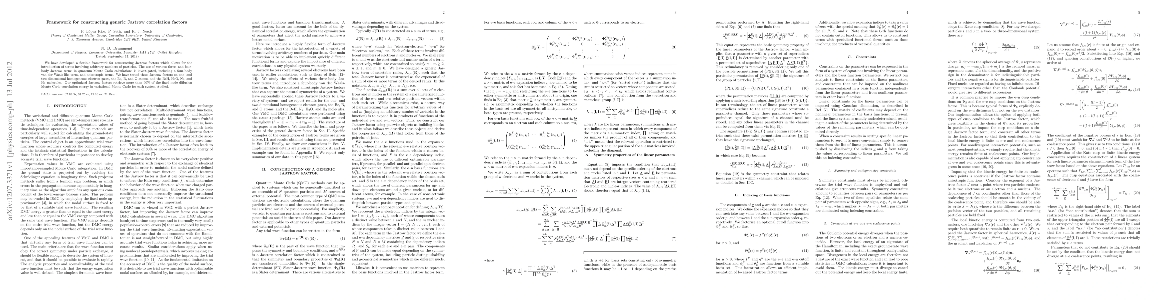 The development of a generic and flexible framework for constructing Jastrow correlation factors that can incorporate an arbitrary number of particles and various types of terms, including anisotropic and four-body van der Waals-like terms.