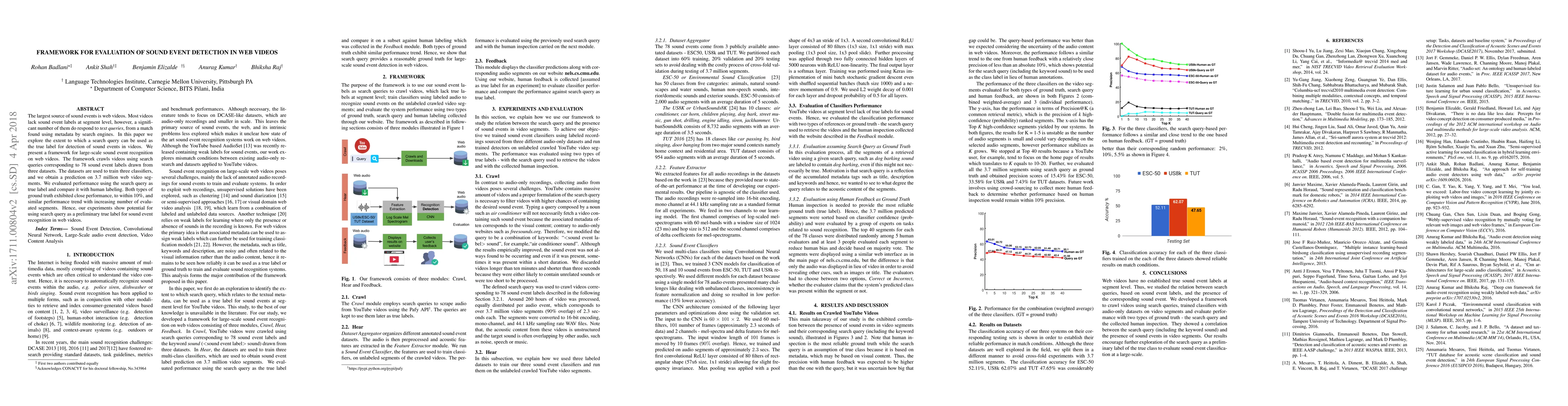 This paper proposes a framework for evaluating sound event detection in web videos using search queries as true labels. The framework trains classifiers on three datasets and predicts sound events in 3.7 million video segments, showing that search query labels closely match human-labeled data, indicating their potential use in preliminary sound event recognition.