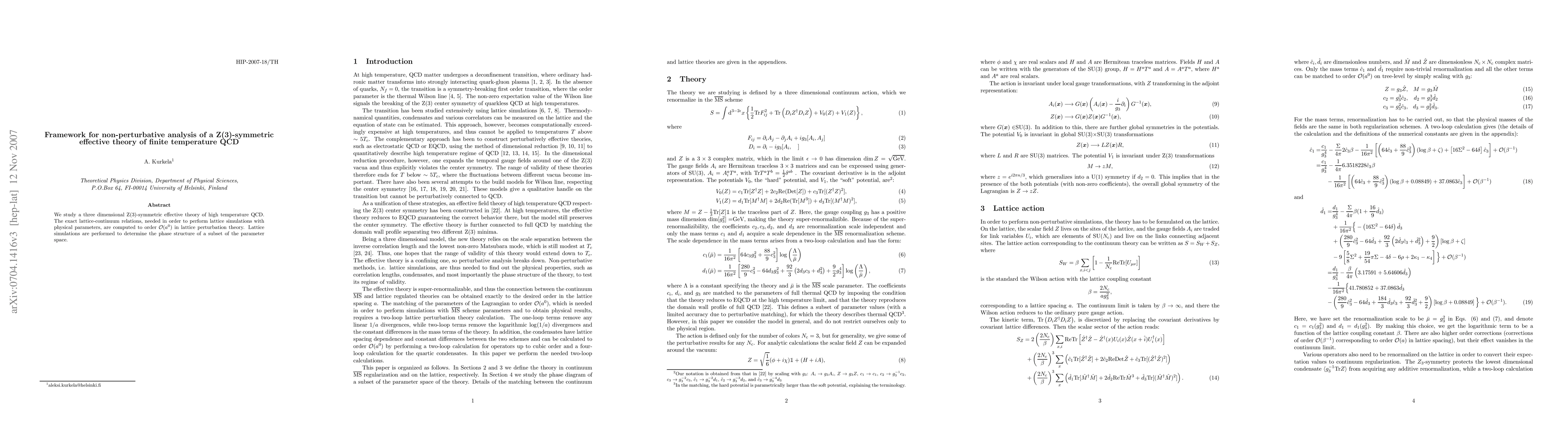 We study a three dimensional Z(3)-symmetric effective theory of high temperature QCD. The exact lattice-continuum relations, needed in order to perform lattice simulations with physical parameters, are computed to order O(a^0) in lattice perturbation theory. Lattice simulations are performed to determine the phase structure of a subset of the parameter space.