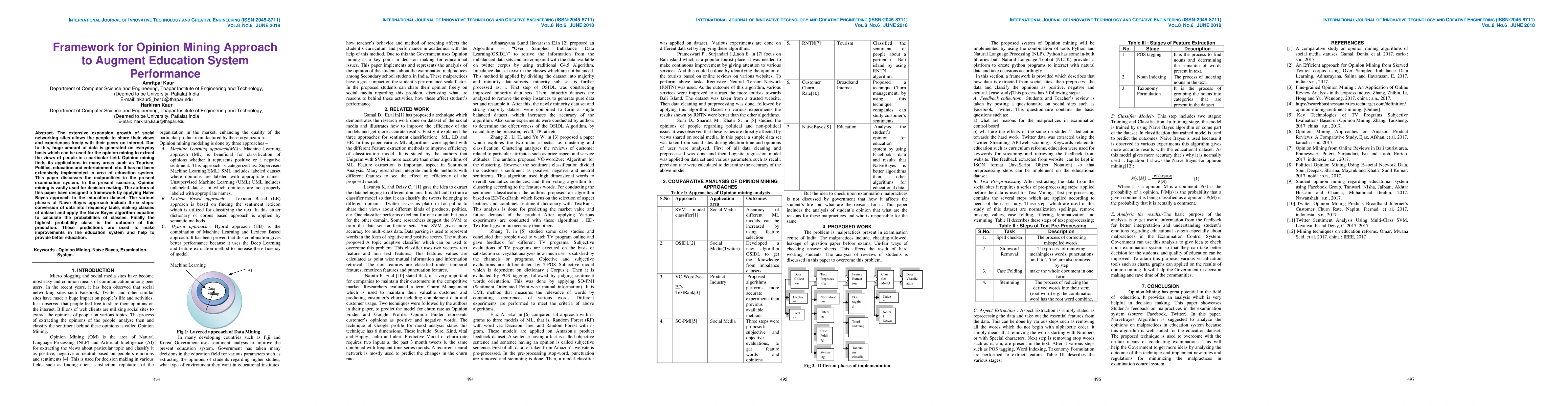 This paper proposes a framework for opinion mining using the Naive Bayes approach to enhance the education system by analyzing social media data. The framework aims to address malpractices in the current examination system and improve educational outcomes through data-driven predictions.
