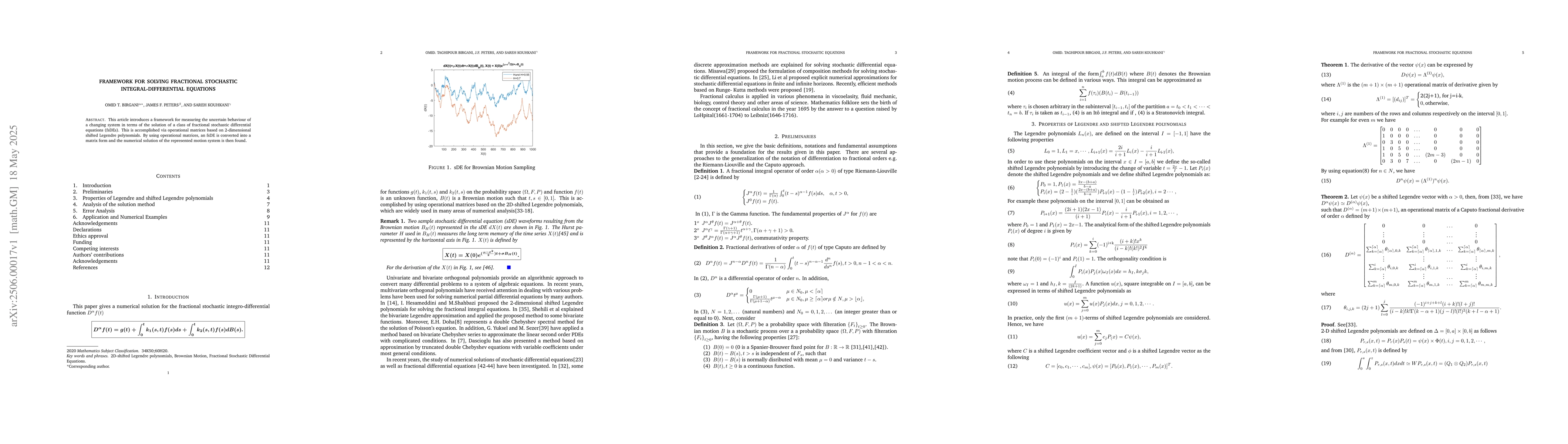 This paper presents a novel framework for analyzing uncertain system behavior using fractional stochastic differential equations (fsDEs). It employs 2-dimensional shifted Legendre polynomials to transform fsDEs into matrix form, enabling numerical solutions for the system's motion.