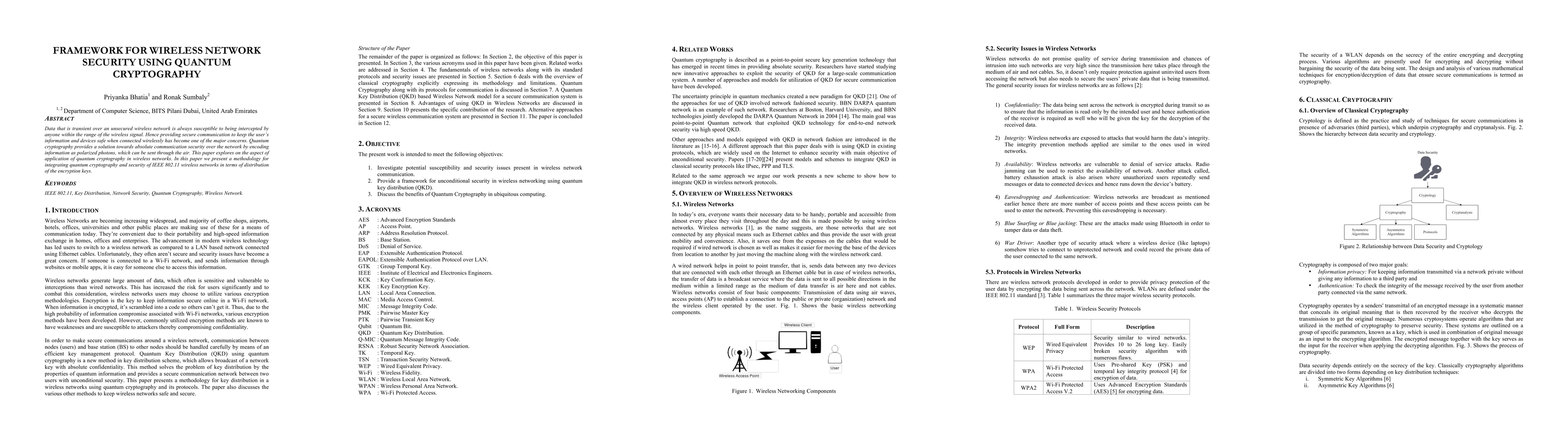 This paper proposes a framework for securing wireless networks using quantum cryptography, leveraging polarized photons to encode information for absolute security. It presents a methodology for integrating quantum cryptography with IEEE 802.11 networks, focusing on the distribution of encryption keys.