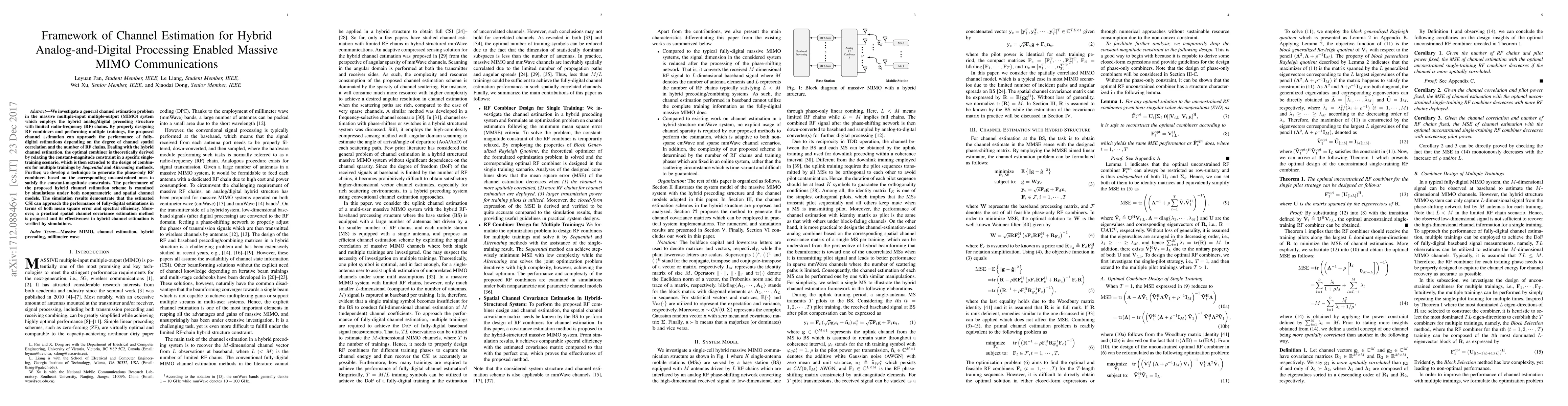 We investigate a general channel estimation problem in the massive multiple-input multiple-output (MIMO) system which employs the hybrid analog/digital precoding structure with limited radio-frequency (RF) chains. By properly designing RF combiners and performing multiple trainings, the proposed channel estimation can approach the performance of fully-digital estimations depending on the degree of channel spatial correlation and the number of RF chains. Dealing with the hybrid channel estimation, the optimal combiner is theoretically derived by relaxing the constant-magnitude constraint in a specific single-training scenario, which is then extended to the design of combiners for multiple trainings by Sequential and Alternating methods. Further, we develop a technique to generate the phase-only RF combiners based on the corresponding unconstrained ones to satisfy the constant-magnitude constraints. The performance of the proposed hybrid channel estimation scheme is examined by simulations under both nonparametric and spatial channel models. The simulation results demonstrate that the estimated CSI can approach the performance of fully-digital estimations in terms of both mean square error and spectral efficiency. Moreover, a practical spatial channel covariance estimation method is proposed and its effectiveness in hybrid channel estimation is verified by simulations.