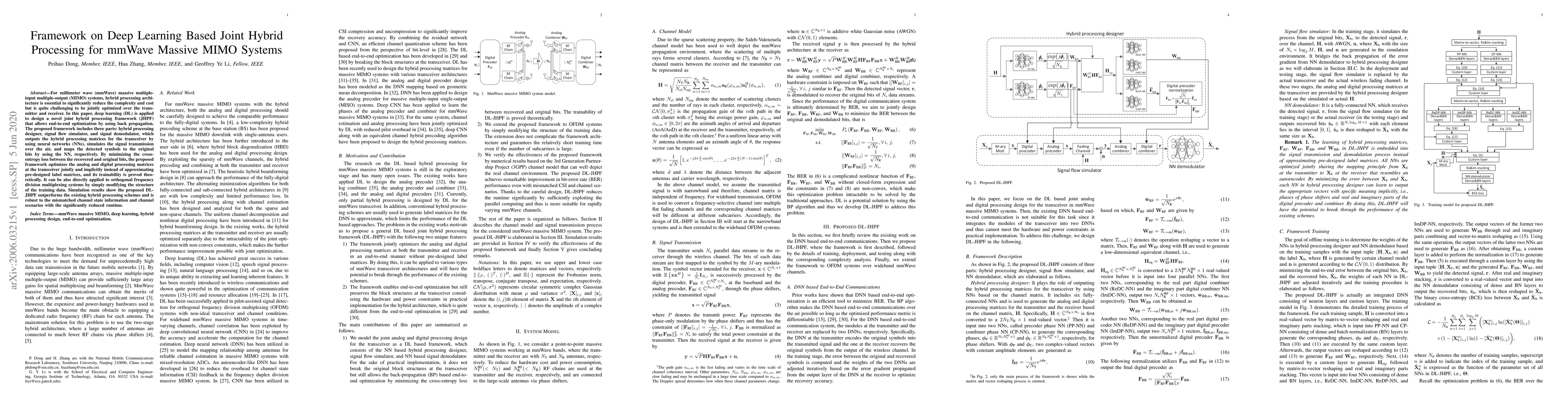 This paper proposes a deep learning-based joint hybrid processing framework (JHPF) for mmWave massive MIMO systems, optimizing both analog and digital processing matrices through end-to-end training. The framework includes neural networks for hybrid processing design, signal simulation, and symbol detection, demonstrating superior performance over existing methods.