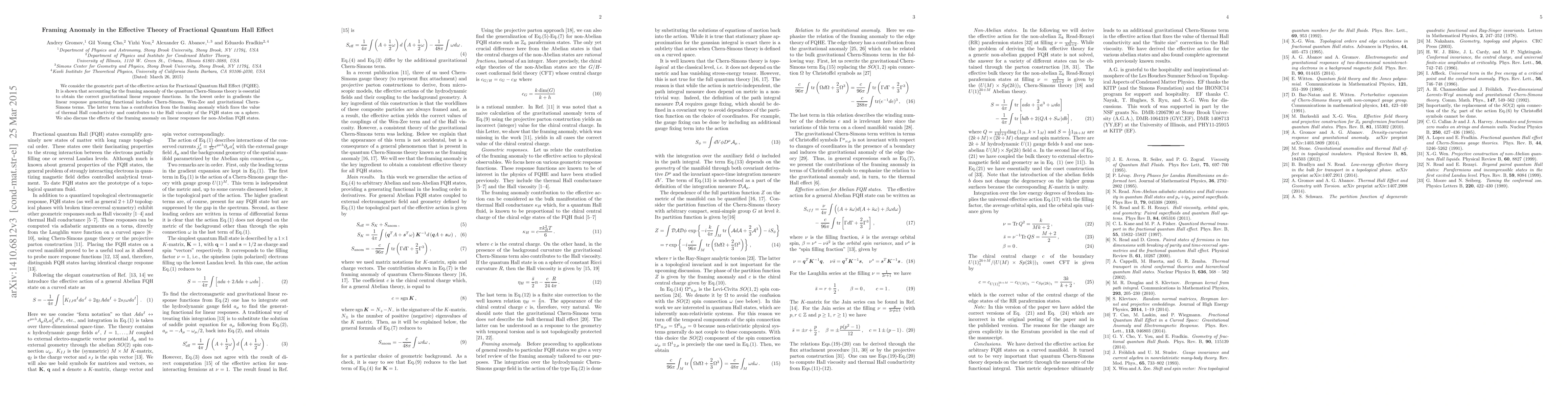 The paper explores the geometric aspects of the effective action for Fractional Quantum Hall Effect (FQHE), emphasizing the necessity of accounting for the framing anomaly in quantum Chern-Simons theory to correctly determine gravitational linear response functions. It highlights the framing anomaly's role in fixing thermal Hall conductivity and contributing to Hall viscosity in FQH states on a sphere, and discusses its implications for non-Abelian FQH states.