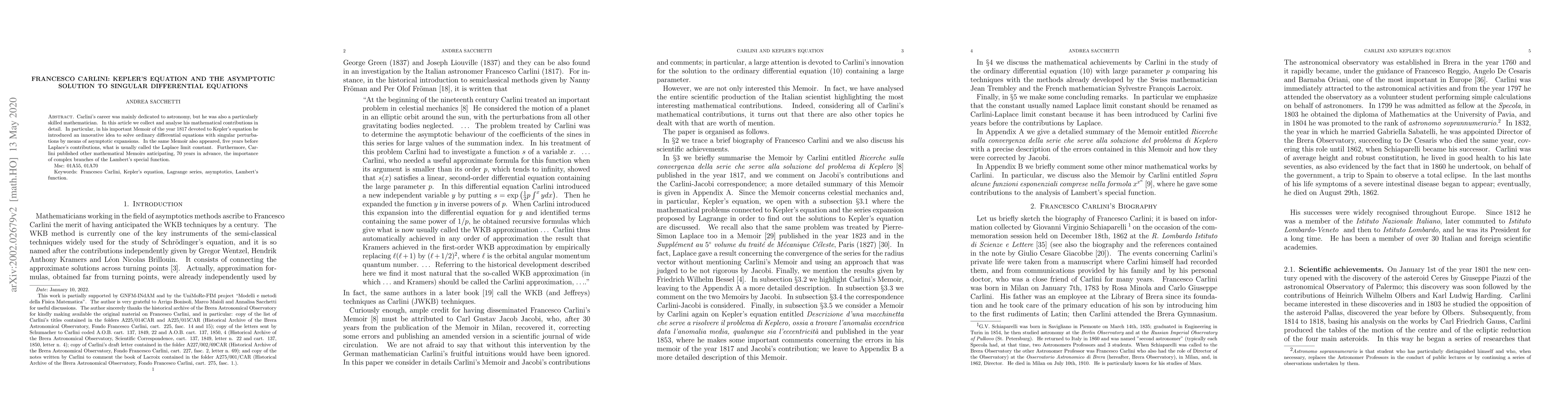 This paper highlights Francesco Carlini's mathematical contributions to solving differential equations with singular perturbations using asymptotic expansions, 70 years ahead of Laplace's work on the subject.