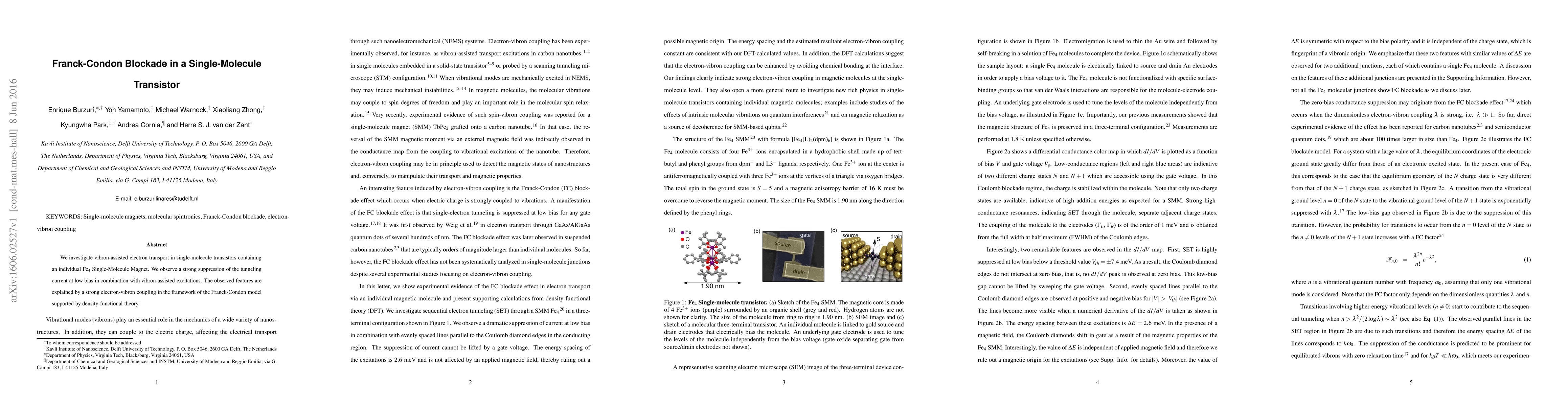 This study reveals a significant suppression of electron tunneling in a single-molecule transistor featuring an Fe4 Single-Molecule Magnet, attributed to strong electron-vibron coupling and explained by the Franck-Condon model, corroborated by density-functional theory.