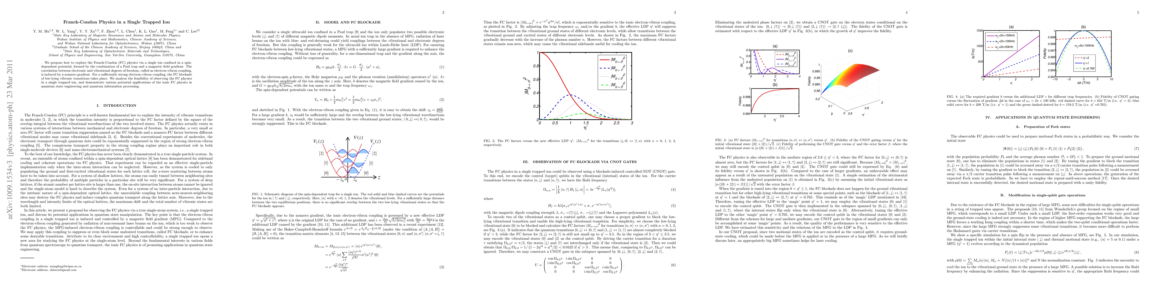 This paper explores the Franck-Condon physics in a single trapped ion using a spin-dependent potential formed by a Paul trap and a magnetic field gradient. It investigates the electron-vibron coupling and the resulting FC blockade, demonstrating potential applications in quantum state engineering and quantum information processing.