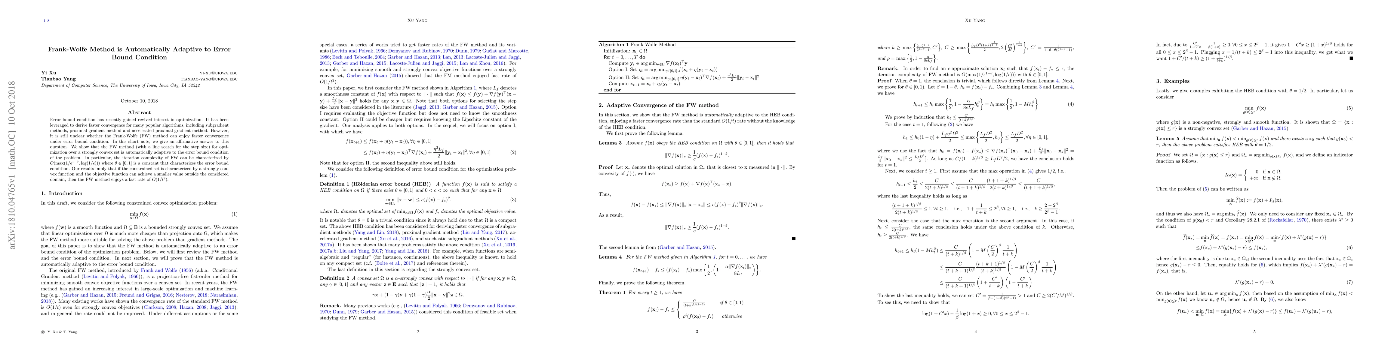 This paper demonstrates that the Frank-Wolfe method can automatically adapt to error bound conditions, achieving faster convergence. The method's iteration complexity is shown to be $O(\max(1/\epsilon^{1-\theta}, \log(1/\epsilon)))$, where $\theta$ characterizes the error bound, implying a fast rate of $O(1/t^2)$ under certain conditions.
