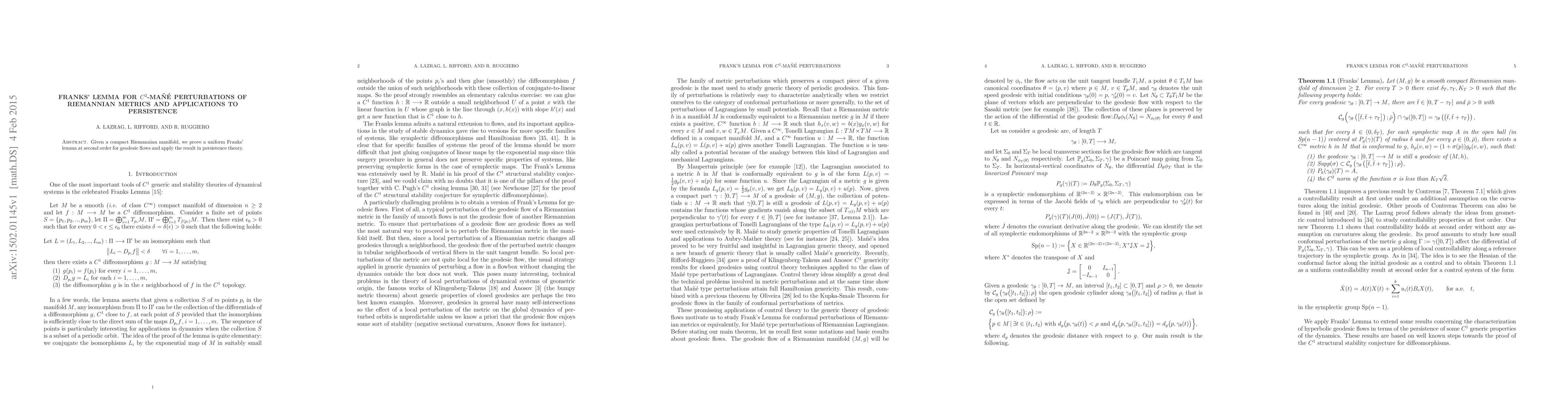 Given a compact Riemannian manifold, we prove a uniform Franks' lemma at second order for geodesic flows and apply the result in persistence theory.