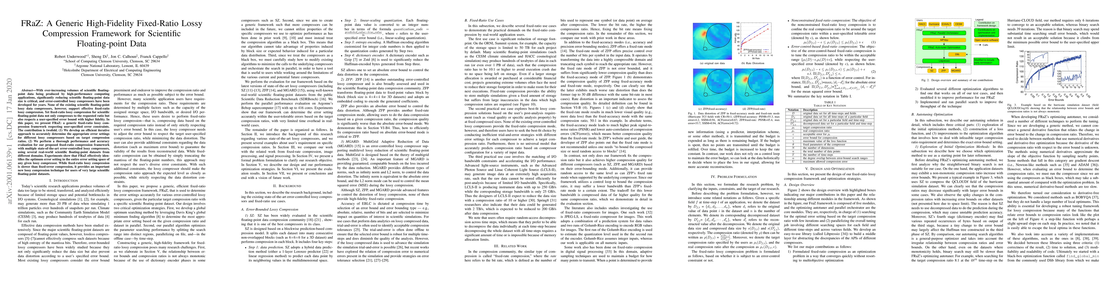 FRaZ presents a generic framework for fixed-ratio lossy compression of scientific floating-point data, achieving desired compression ratios while maintaining user-specified error bounds. The framework develops an iterative method to optimize error settings and demonstrates superior performance and accuracy across various datasets.
