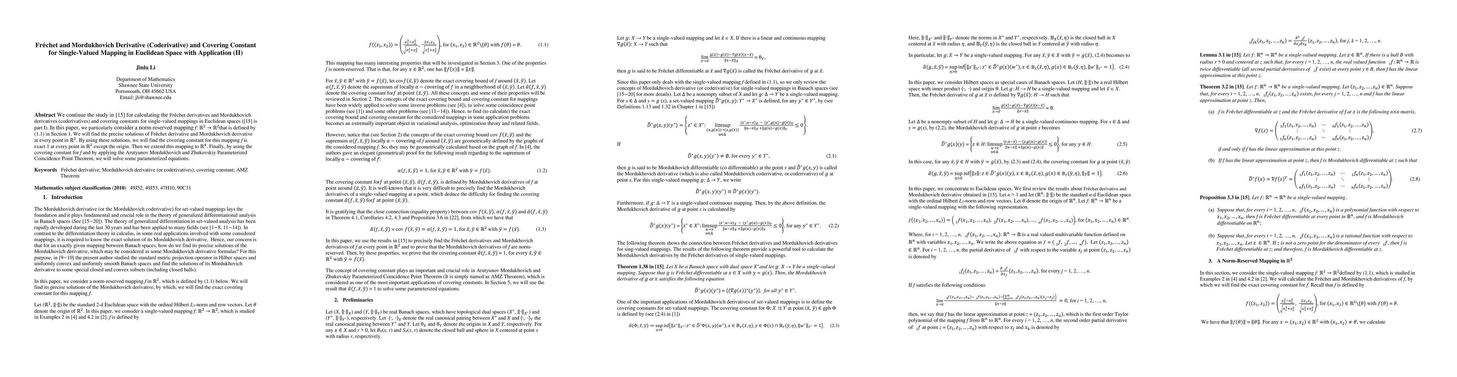 We continue the study in part I for calculating the Frechet derivatives and Mordukhovich derivatives (coderivatives) and covering constants for single-valued mappings in Euclidean spaces (It is part I). In this paper, we particularly consider a norm-reserved mapping f: R^2 to R^2 that is defined by (1.1) in Section 1. We will find the precise solutions of Frechet derivative and Mordukhovich derivative at every point in R^2. By using these solutions, we will find the covering constant for this mapping f is exact 1 at every point in R^2 except the origin. Then we extend this mapping to R^4. Finally, by using the covering constant for f and by applying the Arutyunov Mordukhovich and Zhukovskiy Parameterized Coincidence Point Theorem, we will solve some parameterized equations.