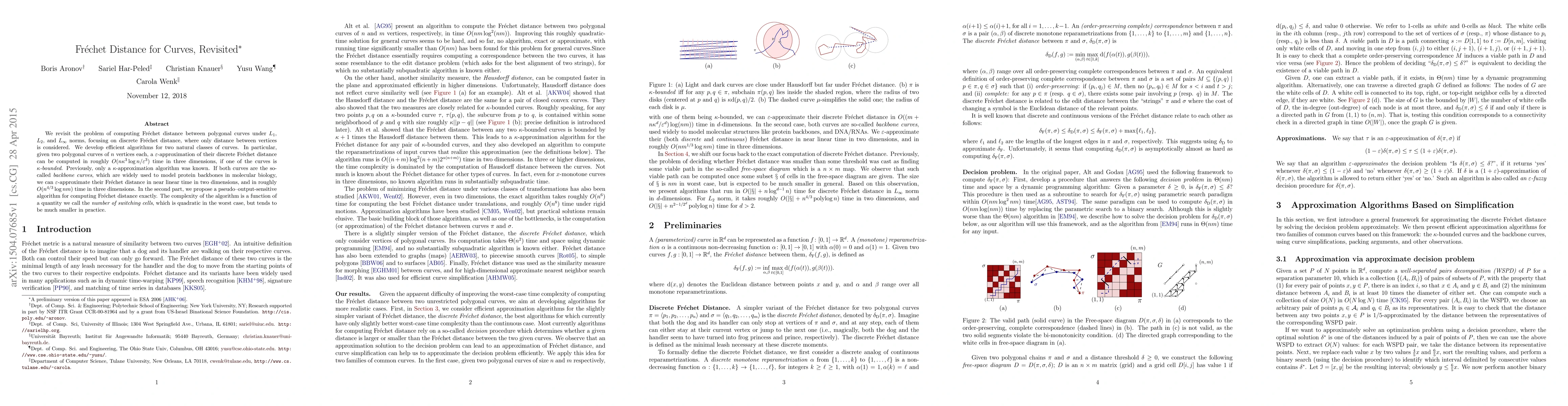 $\renewcommand{\Re}{{\rm I\!\hspace{-0.025em} R}} \newcommand{\eps}{{\varepsilon}} \newcommand{\SetX}{\mathsf{X}} \newcommand{\VorX}[1]{\mathcal{V} \pth{#1}} \newcommand{\Polygon}{\mathsf{P}} \newcommand{\Space}{\overline{\mathsf{m}}} \newcommand{\pth}[2][\!]{#1\left({#2}\right)}$ We revisit the problem of computing Fr\'echet distance between polygonal curves under $L_1$, $L_2$, and $L_\infty$ norms, focusing on discrete Fr\'echet distance, where only distance between vertices is considered. We develop efficient algorithms for two natural classes of curves. In particular, given two polygonal curves of $n$ vertices each, a $\eps$-approximation of their discrete Fr\'echet distance can be computed in roughly $O(n\kappa^3\log n/\eps^3)$ time in three dimensions, if one of the curves is \emph{$\kappa$-bounded}. Previously, only a $\kappa$-approximation algorithm was known. If both curves are the so-called \emph{\backbone~curves}, which are widely used to model protein backbones in molecular biology, we can $\eps$-approximate their Fr\'echet distance in near linear time in two dimensions, and in roughly $O(n^{4/3}\log nm)$ time in three dimensions. In the second part, we propose a pseudo--output-sensitive algorithm for computing Fr\'echet distance exactly. The complexity of the algorithm is a function of a quantity we call the \emph{\bwnumber{}}, which is quadratic in the worst case, but tends to be much smaller in practice.