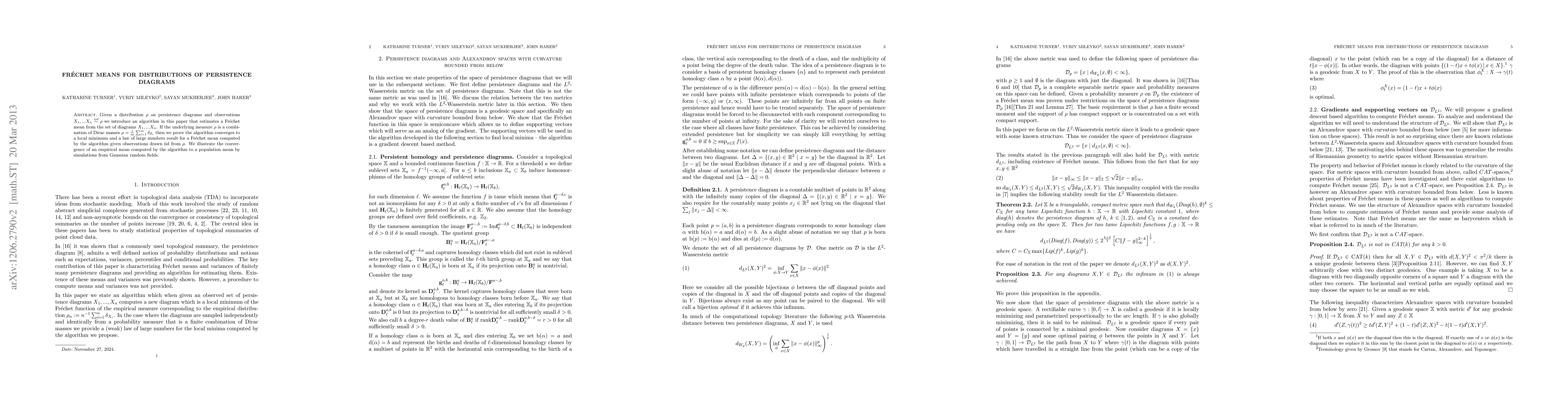 This paper introduces an algorithm to estimate the Fr\'echet mean of a distribution over persistence diagrams, demonstrating its convergence properties and illustrating convergence through simulations using Gaussian random fields. The algorithm is shown to converge to a local minimum when the underlying distribution is a mixture of Dirac masses.