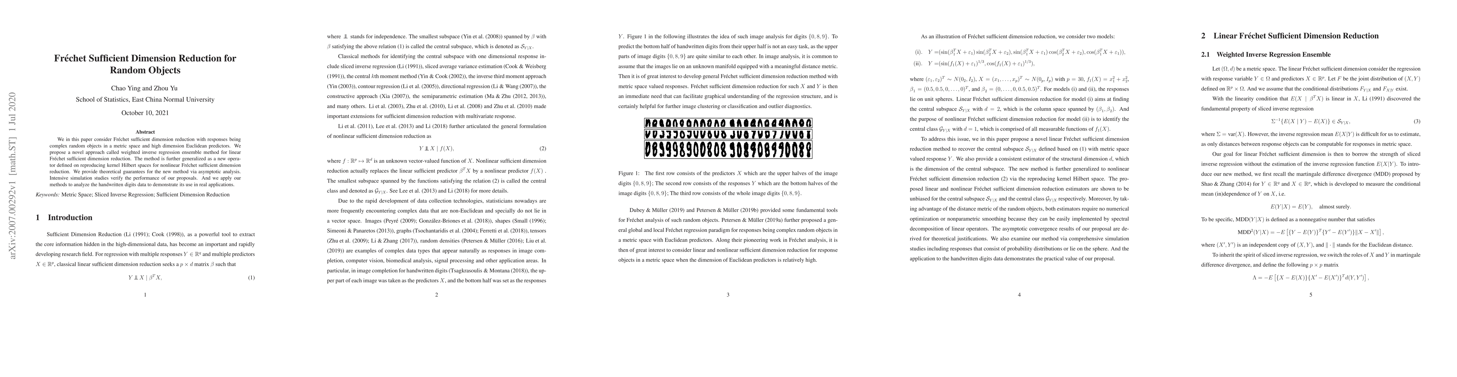 This paper proposes a novel weighted inverse regression ensemble method for linear Fr\'echet sufficient dimension reduction and generalizes it for nonlinear reduction via operators on reproducing kernel Hilbert spaces. Theoretical guarantees and performance are validated through simulations and real-world applications, including analysis of handwritten digits data.