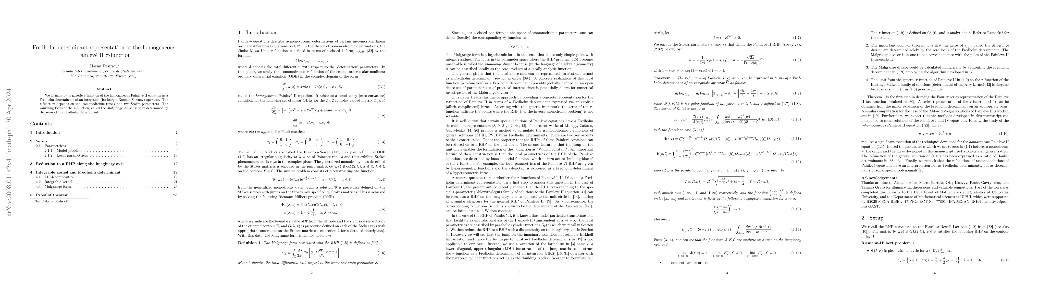 The paper presents the $\tau$-function of the Painlevé II equation as a Fredholm determinant of an integrable operator, with the $\tau$-function's vanishing locus—the Malgrange divisor—determined by the Fredholm determinant's zeros.