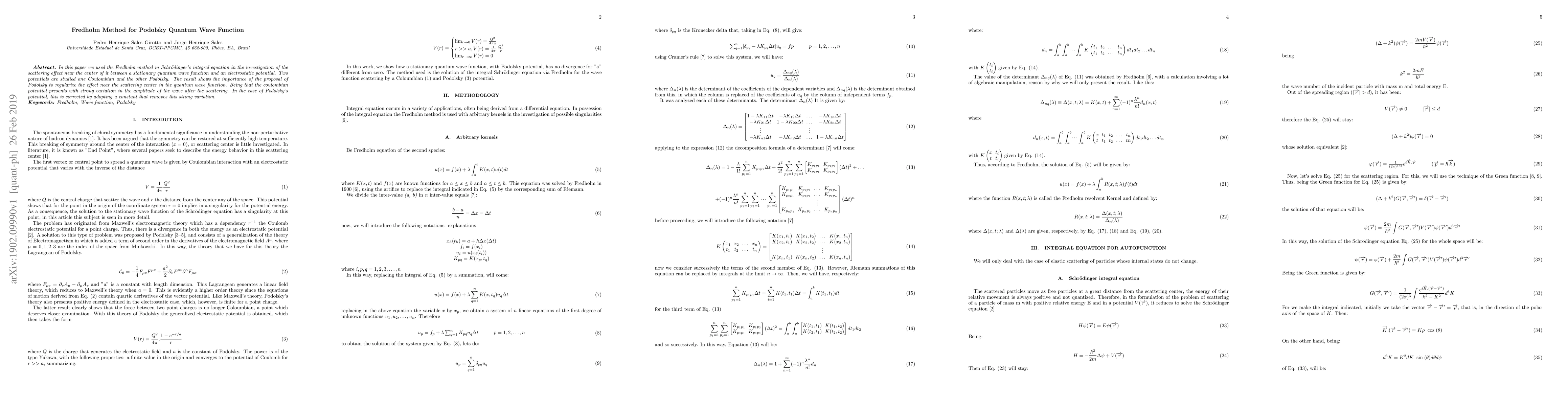 In this paper we used the Fredholm method in Schroedinger's integral equation in the investigation of the scattering effect near the center of it between a stationary quantum wave function and an electrostatic potential. Two potentials are studied one Coulombian and the other Podolsky. The result shows the importance of the proposal of Podolsky to regularize the effect near the scattering center in the quantum wave function. Being that the coulombian potential presents with strong variation in the amplitude of the wave after the scattering. In the case of Podolsky's potential, this is corrected by adopting a constant that removes this strong variation.