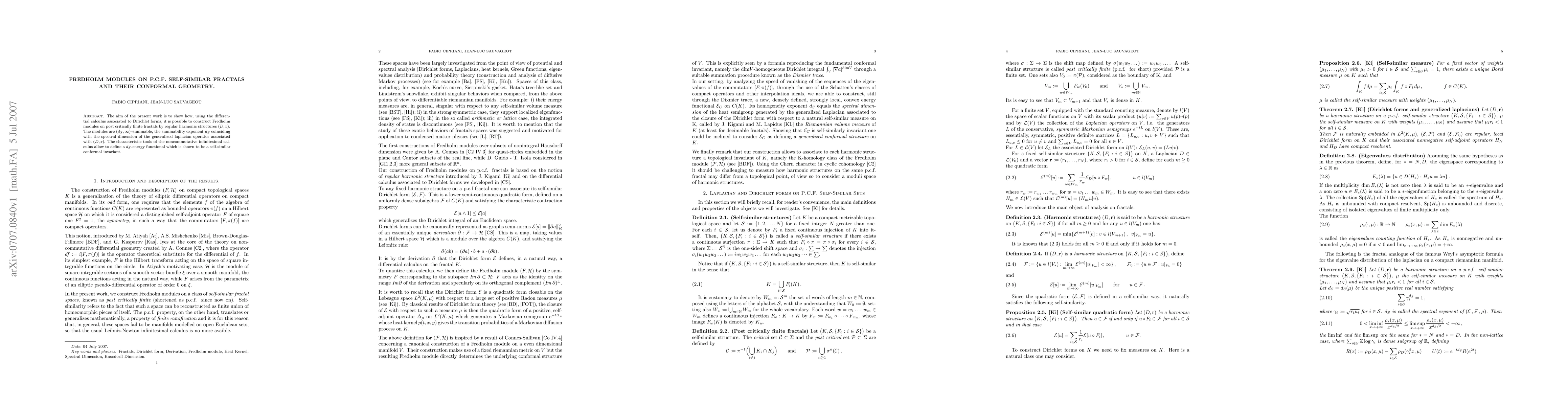 Researchers develop a method to construct Fredholm modules on post critically finite fractals using differential calculus associated with Dirichlet forms, linking self-similarity and conformal geometry.