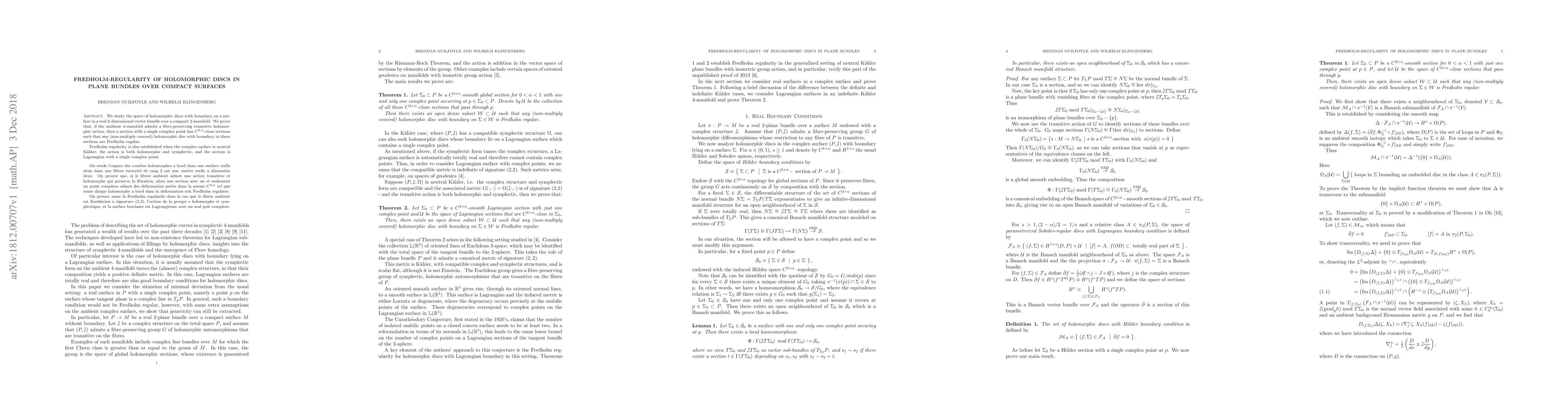 This paper investigates the Fredholm-regularity of holomorphic discs in plane bundles over compact surfaces, proving that under certain conditions, sections with a single complex point have nearby sections whose holomorphic discs are Fredholm regular. The study also establishes Fredholm regularity for neutral Kähler surfaces with a holomorphic and symplectic action.
