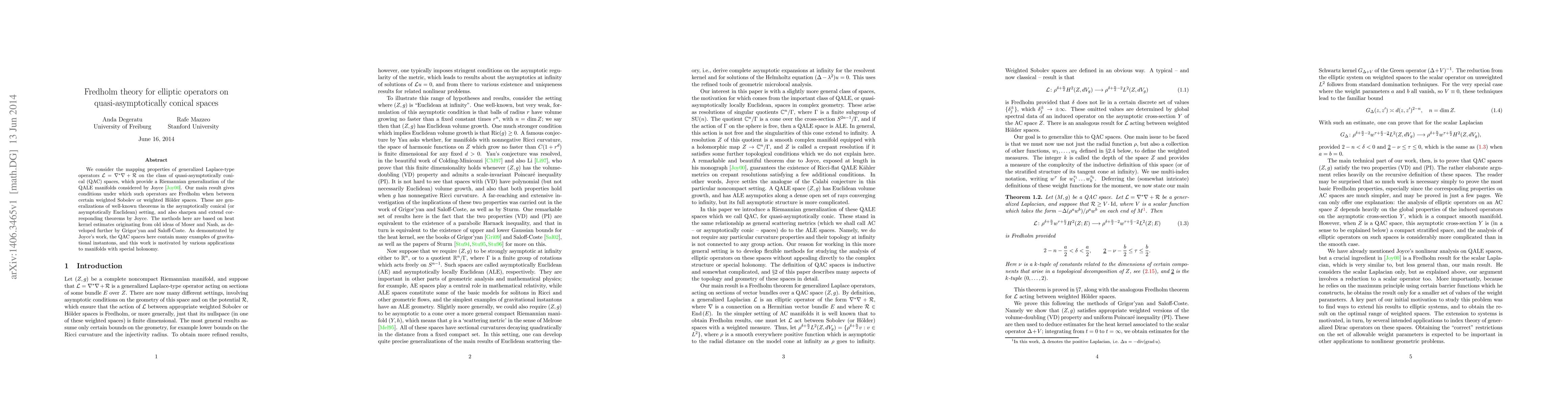 This paper explores the Fredholm properties of generalized Laplace-type operators on quasi-asymptotically conical spaces, extending known results from asymptotically conical settings and sharpening theorems by Joyce. The methods utilize heat kernel estimates inspired by Moser, Nash, Grigor'yan, and Saloff-Coste.
