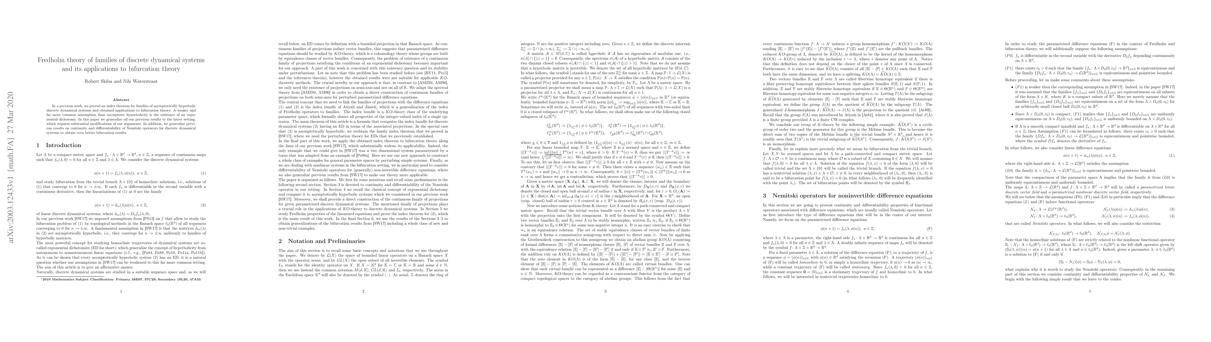 This paper generalizes previous index theorems for asymptotically hyperbolic discrete dynamical systems to systems with an exponential dichotomy, enhancing applications to bifurcation theory. It also extends the continuity and differentiability of Nemitski operators for discrete systems to improve bifurcation results.