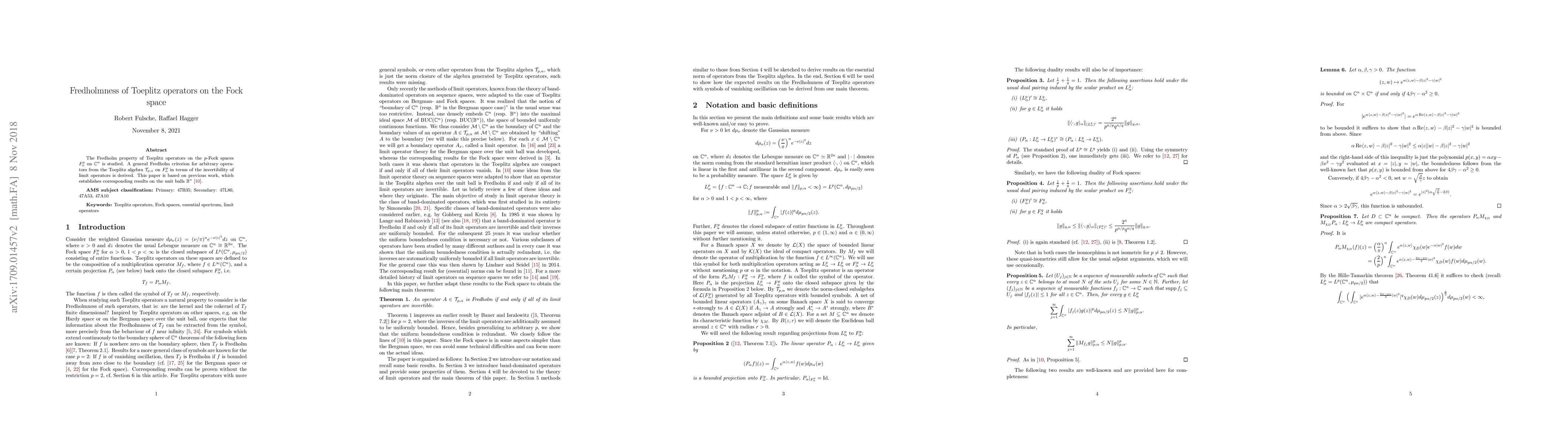 This paper establishes a Fredholm criterion for Toeplitz operators on $p$-Fock spaces in terms of the invertibility of limit operators, extending previous results from unit ball settings to the Fock space context.