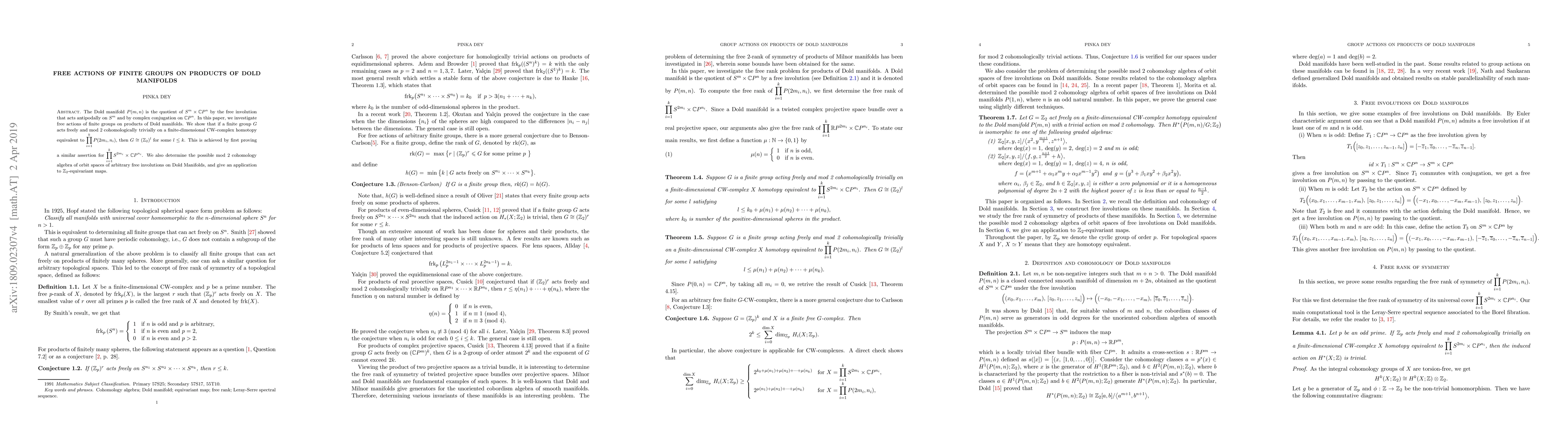 This paper investigates free actions of finite groups on products of Dold manifolds, proving that such actions are limited to groups isomorphic to $(\mathbb{Z}_2)^l$ for some $l \leq k$. It also determines the mod 2 cohomology algebra of orbit spaces and applies these findings to $\mathbb{Z}_2$-equivariant maps.
