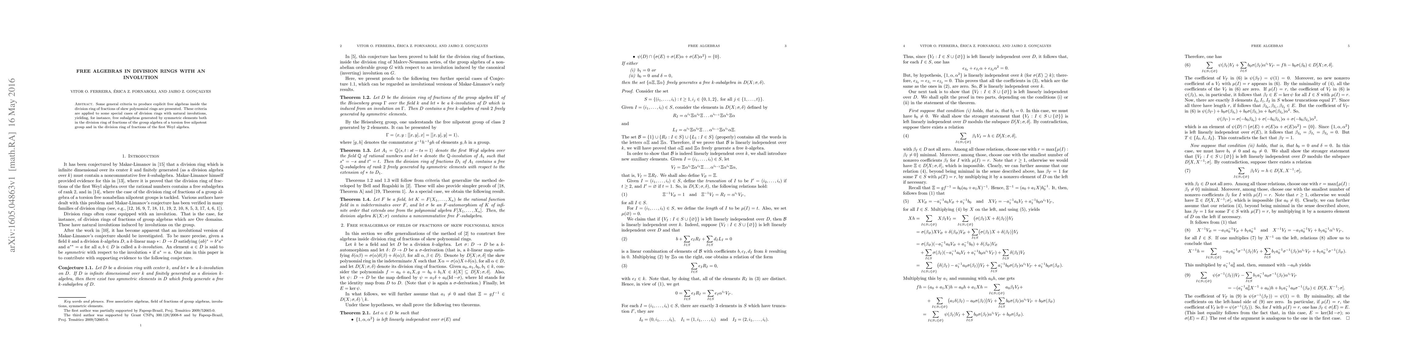 This paper presents criteria for constructing explicit free algebras within division rings of fractions of skew polynomial rings. It applies these criteria to division rings with natural involutions, resulting in free subalgebras generated by symmetric elements in specific cases, such as the group algebra of a torsion-free nilpotent group and the first Weyl algebra.
