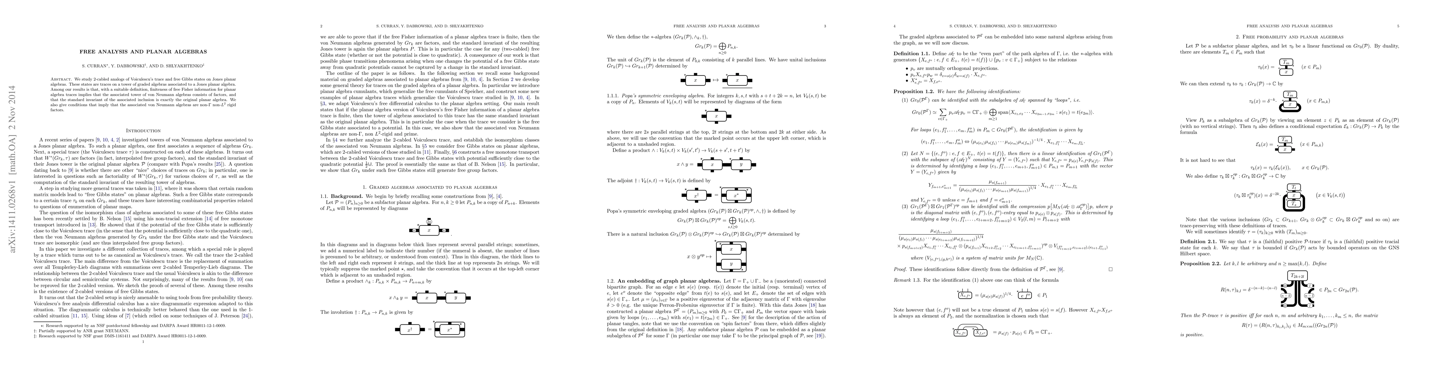We study 2-cabled analogs of Voiculescu's trace and free Gibbs states on Jones planar algebras. These states are traces on a tower of graded algebras associated to a Jones planar algebra. Among our results is that, with a suitable definition, finiteness of free Fisher information for planar algebra traces implies that the associated tower of von Neumann algebras consists of factors, and that the standard invariant of the associated inclusion is exactly the original planar algebra. We also give conditions that imply that the associated von Neumann algebras are non-$\Gamma$ non-$L^2$ rigid factors.