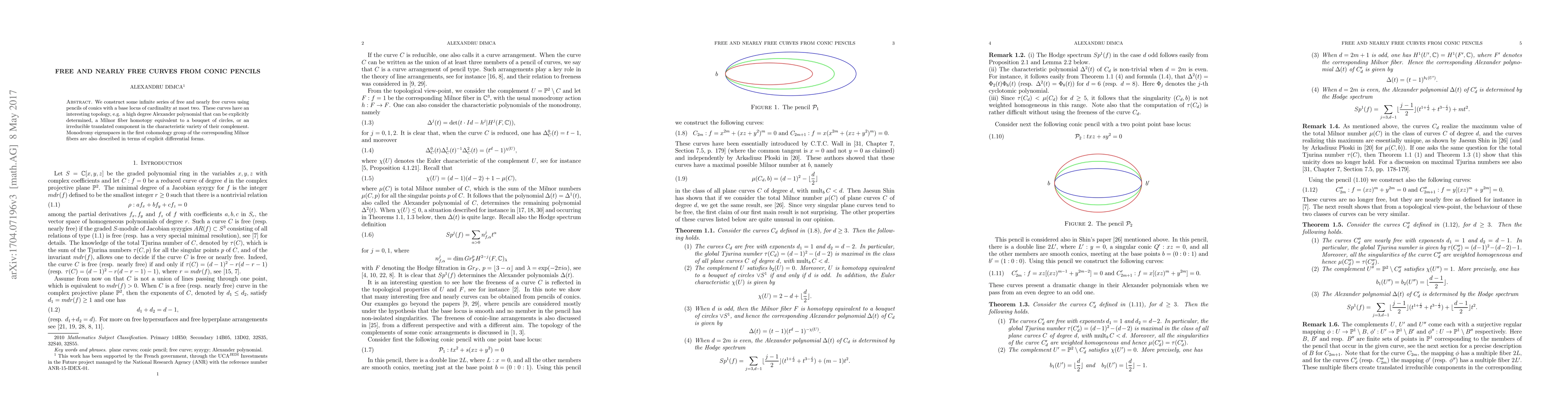 This paper constructs infinite series of free and nearly free curves derived from conic pencils with a base locus of at most two points, highlighting their topological features such as high degree Alexander polynomials and Milnor fibers homotopy equivalent to a bouquet of circles. It also describes the monodromy eigenspaces in the first cohomology group using explicit differential forms.