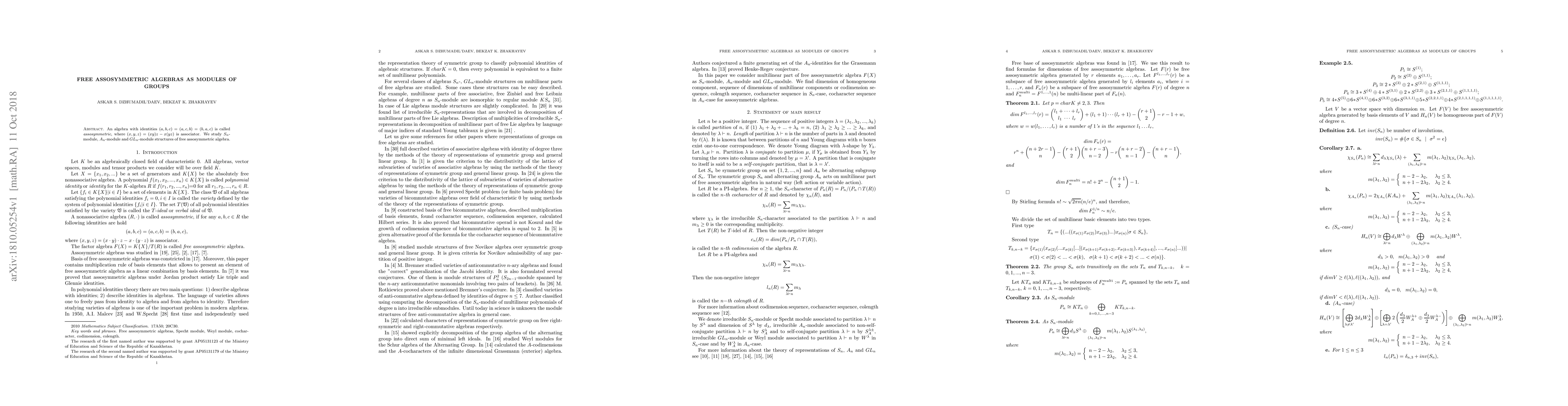 This paper investigates the $S_n$-module, $A_n$-module, and $GL_n$-module structures of free assosymmetric algebras, which are algebras satisfying specific assosymmetric identities involving the associator. The study focuses on how these modules can be structured under various group actions.