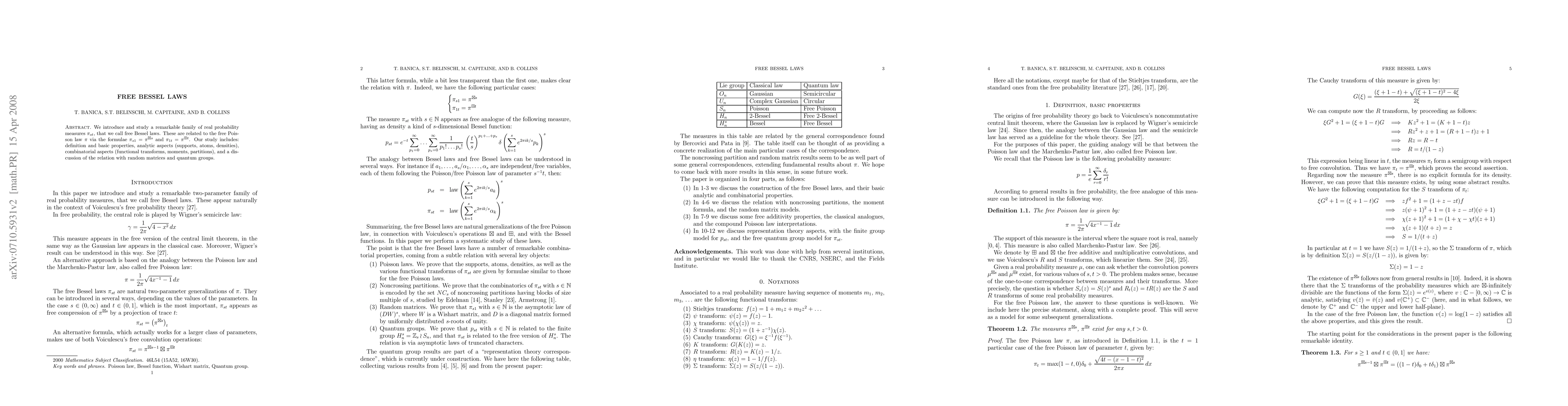 We introduce and study a remarkable family of real probability measures $\pi_{st}$, that we call free Bessel laws. These are related to the free Poisson law $\pi$ via the formulae $\pi_{s1}=\pi^{\boxtimes s}$ and $\pi_{1t}=\pi^{\boxplus t}$. Our study includes: definition and basic properties, analytic aspects (supports, atoms, densities), combinatorial aspects (functional transforms, moments, partitions), and a discussion of the relation with random matrices and quantum groups.
