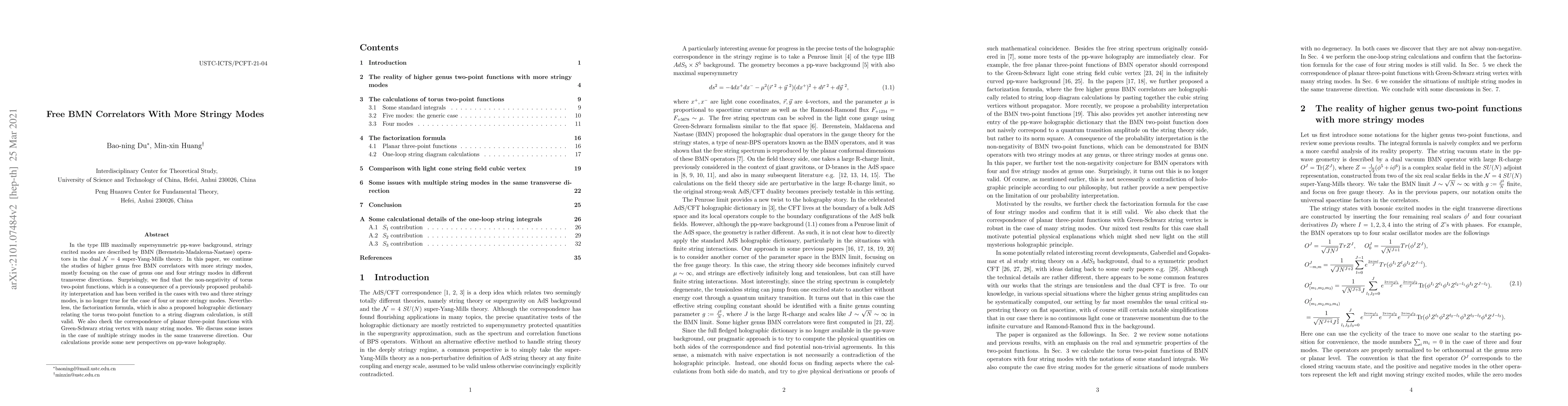 This paper explores higher genus free BMN correlators in the type IIB maximally supersymmetric pp-wave background, focusing on genus one with four stringy modes. It finds that non-negativity of torus two-point functions no longer holds for four or more modes, though the factorization formula remains valid.