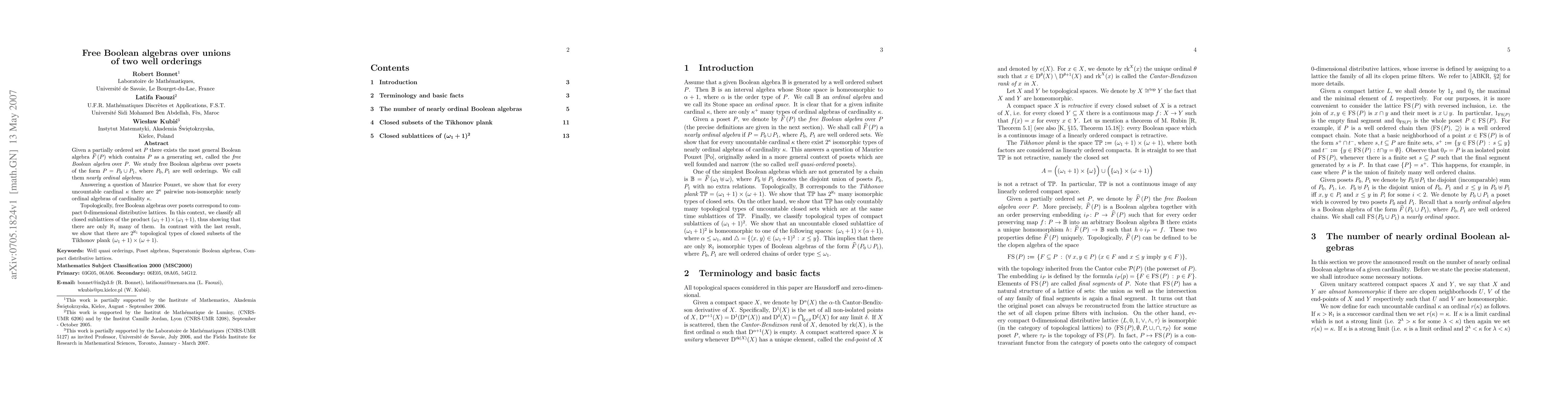 This paper investigates free Boolean algebras over unions of two well-orderings, termed nearly ordinal algebras, and demonstrates that for every uncountable cardinal κ, there exist 2^κ pairwise non-isomorphic nearly ordinal algebras of cardinality κ. It also classifies closed sublattices of a specific product, revealing only ℵ₁ many such sublattices, contrasting with the 2^ℵ₁ topological types of closed subsets in the Tikhonov plank.