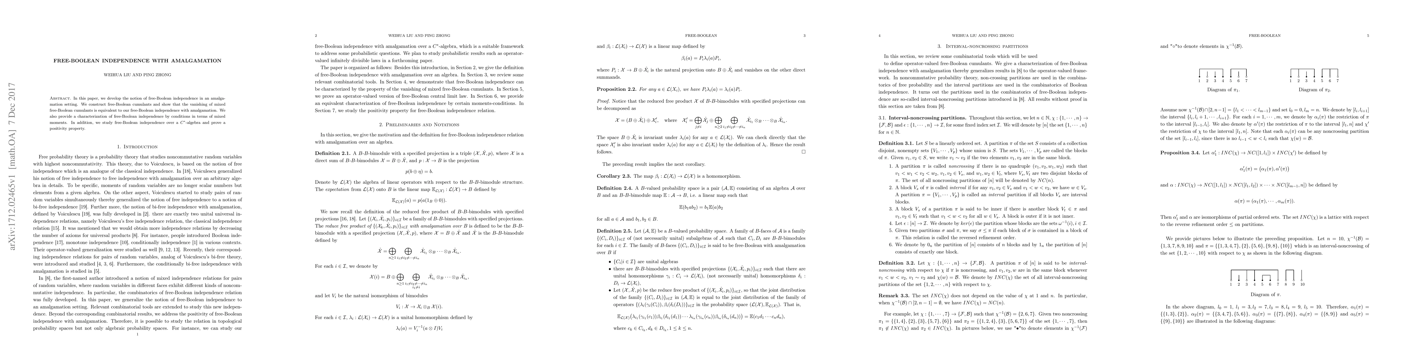 This paper introduces the concept of free-Boolean independence in an amalgamation context, constructs free-Boolean cumulants, and demonstrates their equivalence to the vanishing of mixed cumulants for free-Boolean independence with amalgamation. It also characterizes free-Boolean independence via mixed moments and proves a positivity property in the context of $C^*$-algebras.