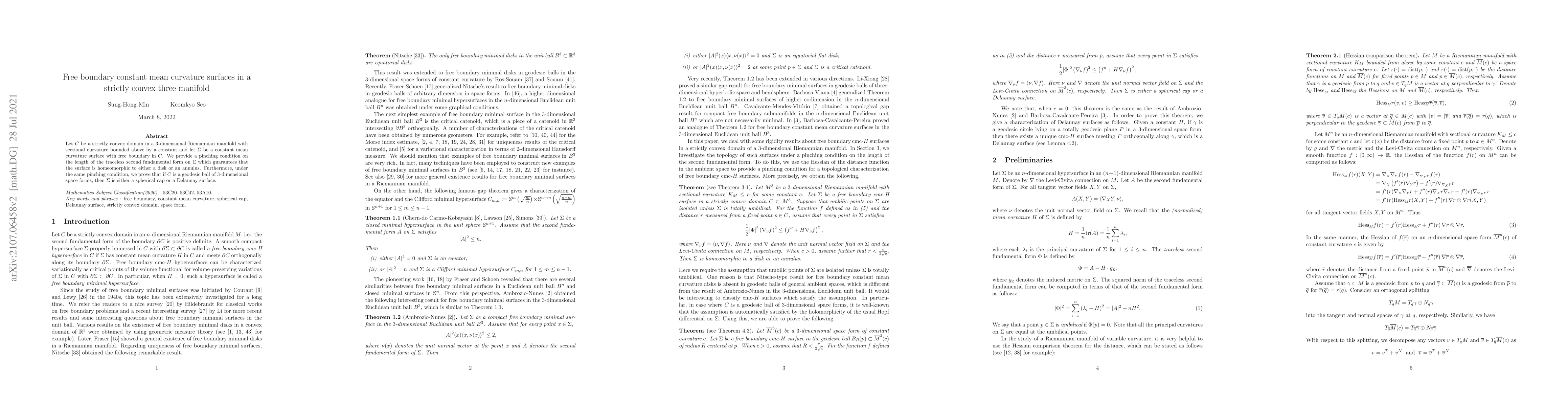 Researchers found that a constant mean curvature surface with free boundary in a strictly convex 3-manifold can be homeomorphic to either a disk or an annulus under certain conditions, depending on the shape of the surrounding domain.