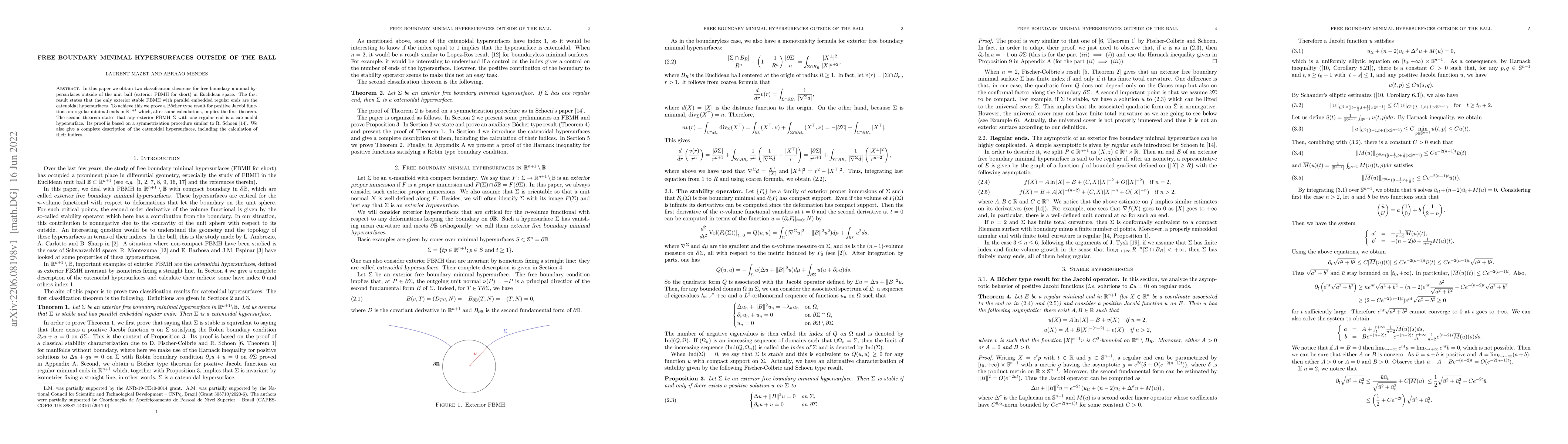 In this paper we obtain two classification theorems for free boundary minimal hypersurfaces outside of the unit ball (exterior FBMH for short) in Euclidean space. The first result states that the only exterior stable FBMH with parallel embedded regular ends are the catenoidal hypersurfaces. To achieve this we prove a B\^ocher type result for positive Jacobi functions on regular minimal ends in $\mathbb{R}^{n+1}$ which, after some calculations, implies the first theorem. The second theorem states that any exterior FBMH $\Sigma$ with one regular end is a catenoidal hypersurface. Its proof is based on a symmetrization procedure similar to R. Schoen [14]. We also give a complete description of the catenoidal hypersurfaces, including the calculation of their indices.