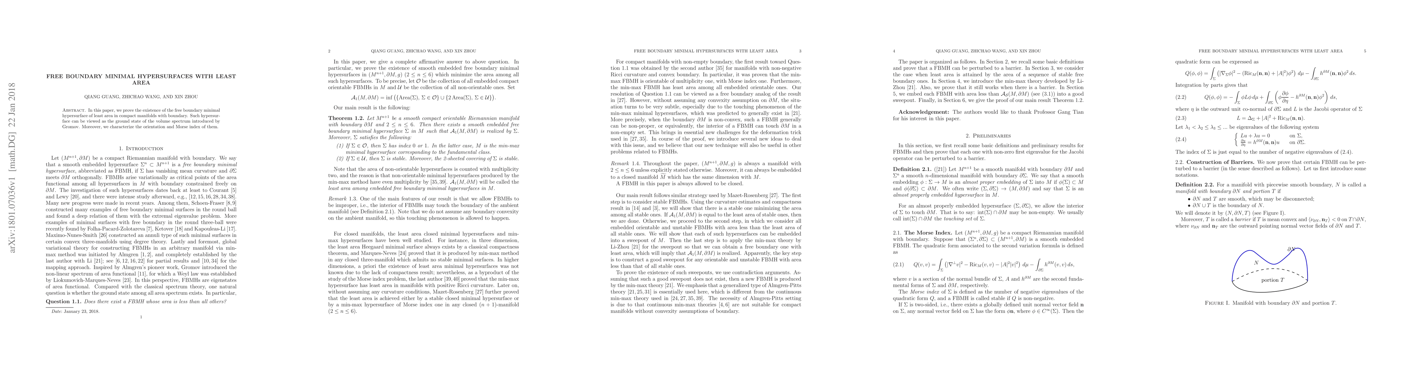 In this paper, we prove the existence of the free boundary minimal hypersurface of least area in compact manifolds with boundary. Such hypersurface can be viewed as the ground state of the volume spectrum introduced by Gromov. Moreover, we characterize the orientation and Morse index of them.
