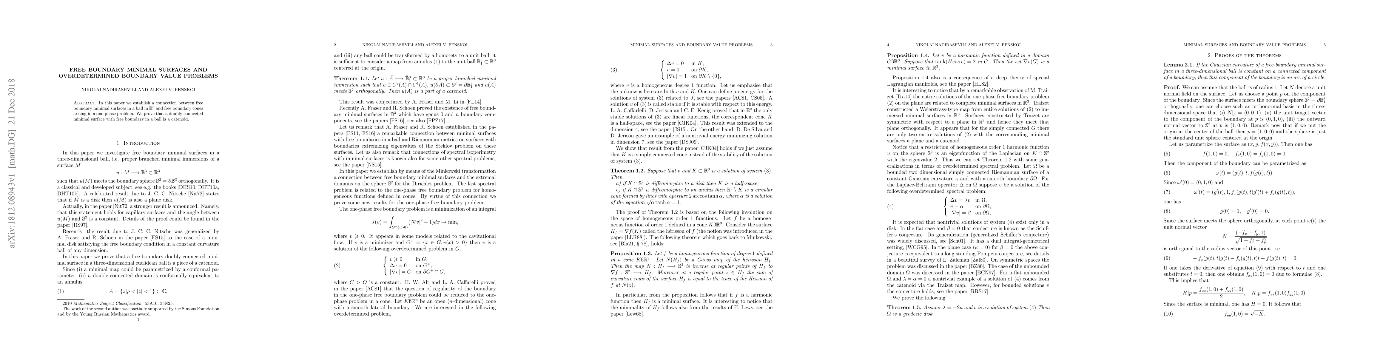 In this paper we establish a connection between free boundary minimal surfaces in a ball in $\mathbb{R}^3$ and free boundary cones arising in a one-phase problem. We prove that a doubly connected minimal surface with free boundary in a ball is a catenoid.