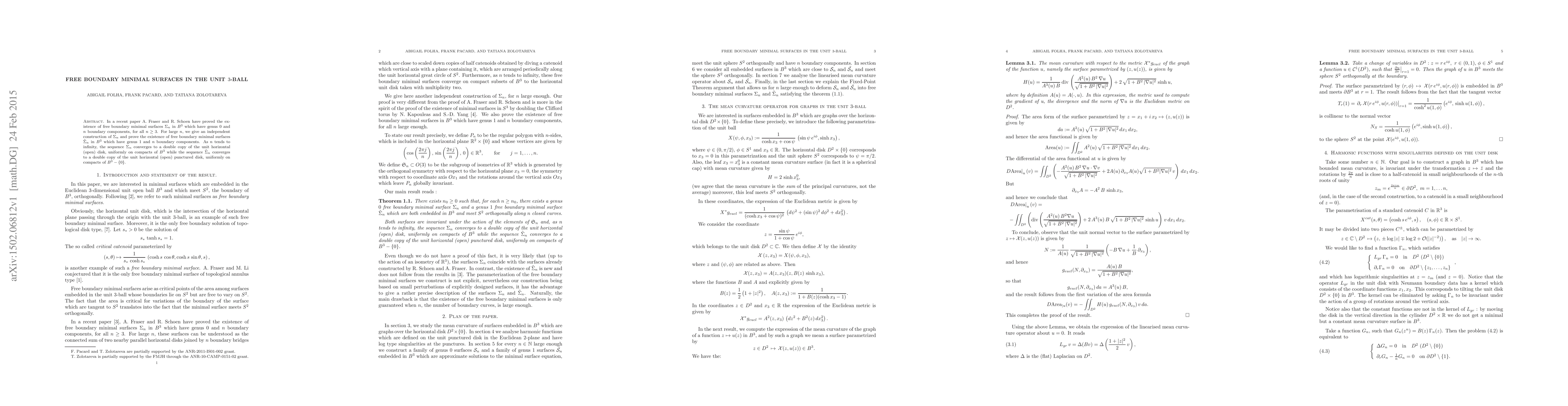 This paper constructs free boundary minimal surfaces in the unit 3-ball with genus 0 and 1, proving their existence for large values of n. As n approaches infinity, the genus 0 surfaces converge to a double copy of the unit disk, while the genus 1 surfaces converge to a double copy of the punctured unit disk.