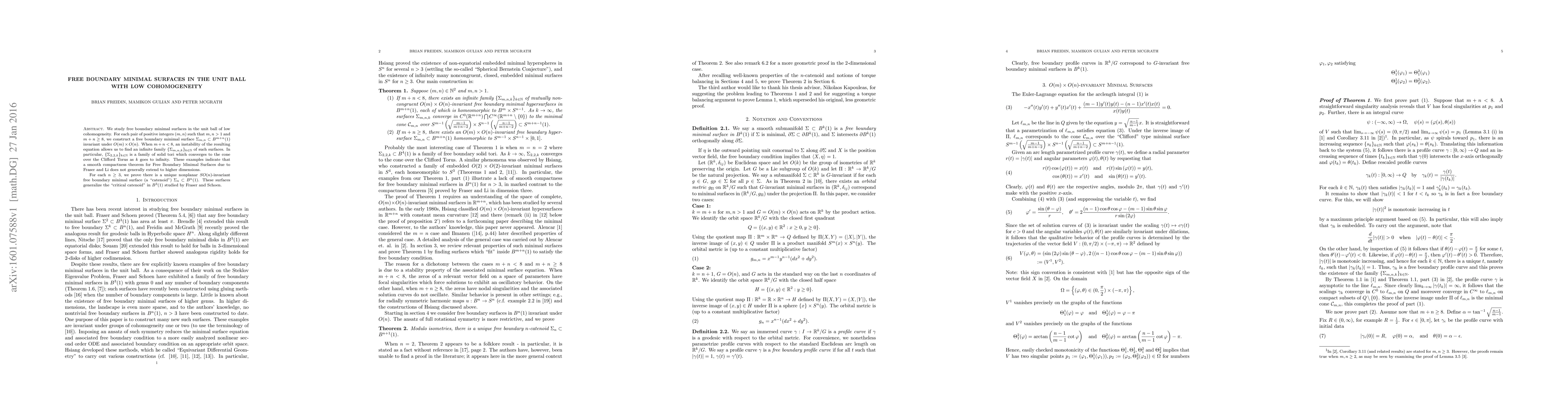 We study free boundary minimal surfaces in the unit ball of low cohomogeneity. For each pair of positive integers $(m,n)$ such that $m, n >1$ and $m+n\geq 8$, we construct a free boundary minimal surface $\Sigma_{m, n} \subset B^{m+n}$(1) invariant under $O(m)\times O(n)$. When $m+n<8$, an instability of the resulting equation allows us to find an infinite family $\{\Sigma_{m,n, k}\}_{k\in \mathbb{N}}$ of such surfaces. In particular, $\{\Sigma_{2, 2, k}\}_{k\in \mathbb{N}}$ is a family of solid tori which converges to the cone over the Clifford Torus as $k$ goes to infinity. These examples indicate that a smooth compactness theorem for Free Boundary Minimal Surfaces due to Fraser and Li does not generally extend to higher dimensions. For each $n\geq 3$, we prove there is a unique nonplanar $SO(n)$-invariant free boundary minimal surface (a "catenoid") $\Sigma_n \subset B^n(1)$. These surfaces generalize the "critical catenoid" in $B^3(1)$ studied by Fraser and Schoen.