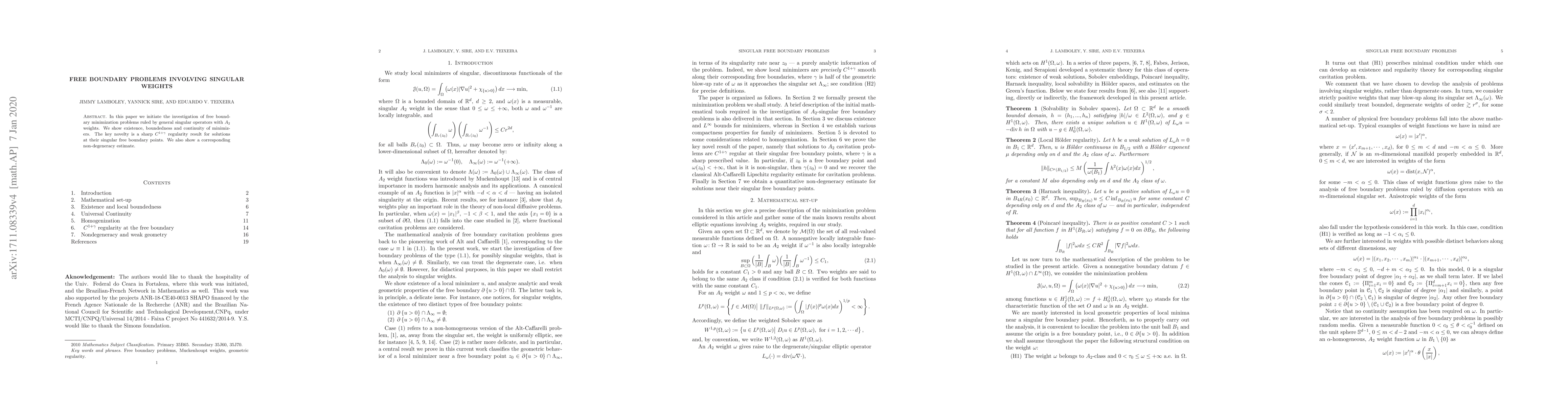 Researchers investigate free boundary problems involving singular weights, showing existence and boundedness of minimizers with sharp $C^{1+ u}$ regularity results and non-degeneracy estimates.