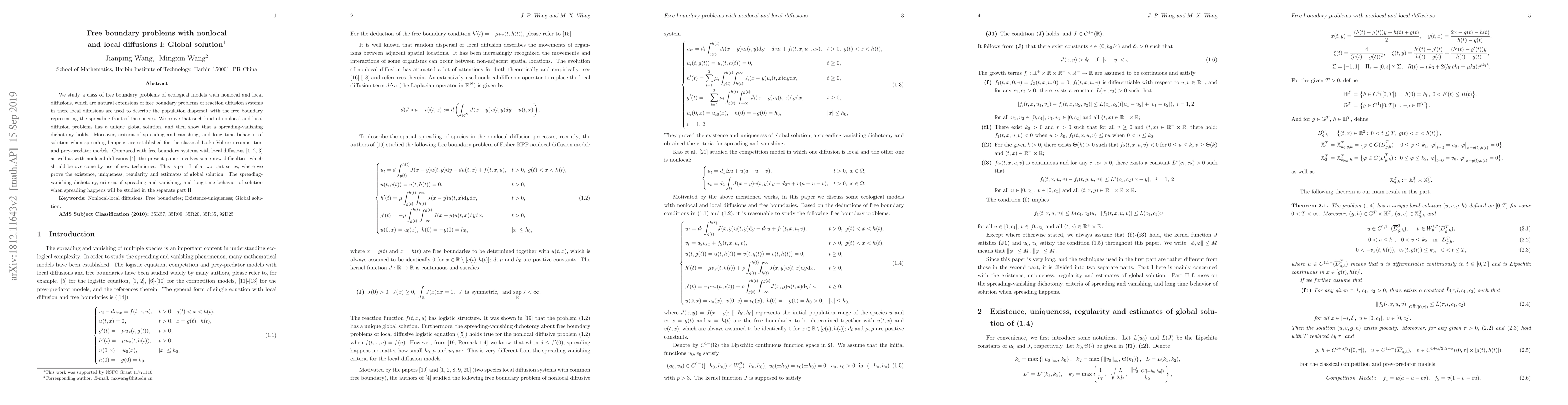 A research paper proves that a class of free boundary problems in ecological models with nonlocal and local diffusions has a unique global solution. It also establishes criteria for spreading and vanishing behavior and long-time solution properties.
