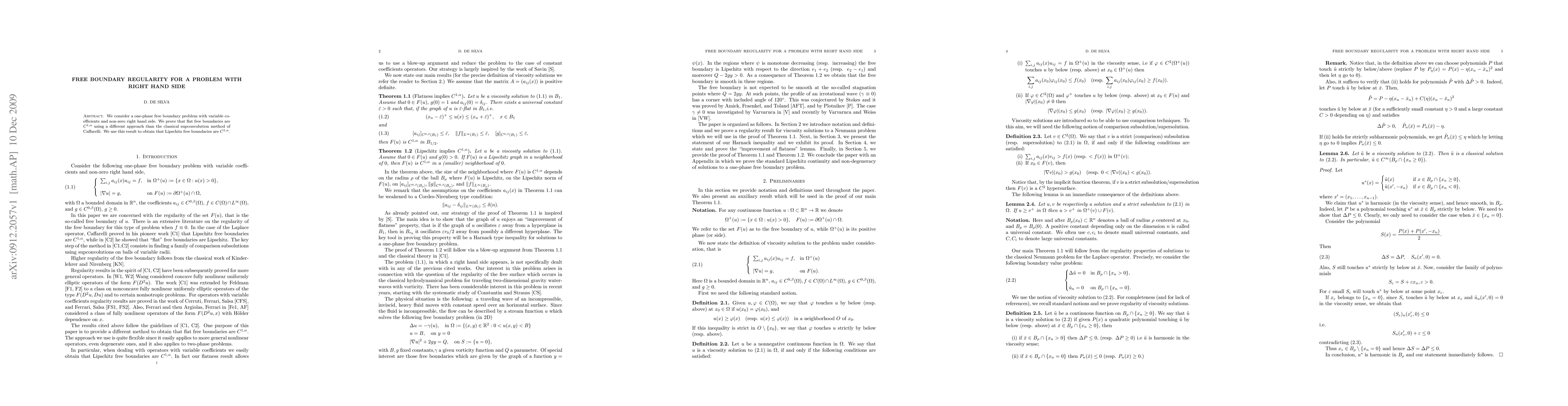 This paper proves the regularity of flat and Lipschitz free boundaries in a one-phase free boundary problem with variable coefficients and a non-zero right-hand side, using an approach distinct from Caffarelli's classical supconvolution method. The result establishes $C^{1,\alpha}$ regularity for these boundaries.