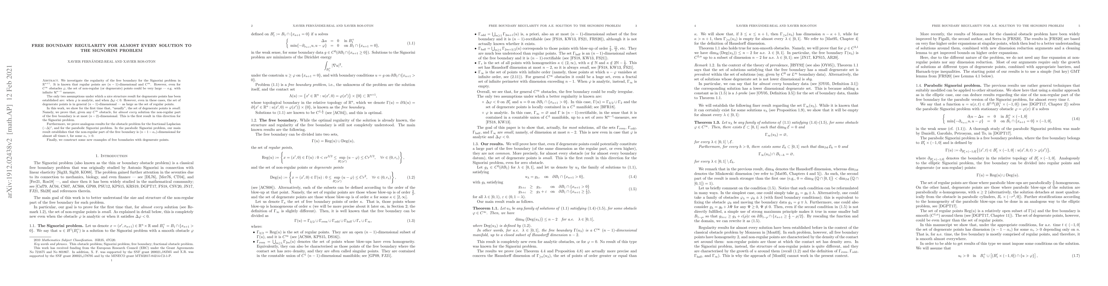 We investigate the regularity of the free boundary for the Signorini problem in $\mathbb{R}^{n+1}$. It is known that regular points are $(n-1)$-dimensional and $C^\infty$. However, even for $C^\infty$ obstacles $\varphi$, the set of non-regular (or degenerate) points could be very large, e.g. with infinite $\mathcal{H}^{n-1}$ measure. The only two assumptions under which a nice structure result for degenerate points has been established are: when $\varphi$ is analytic, and when $\Delta\varphi < 0$. However, even in these cases, the set of degenerate points is in general $(n-1)$-dimensional (as large as the set of regular points). In this work, we show for the first time that, "usually", the set of degenerate points is small. Namely, we prove that, given any $C^\infty$ obstacle, for "almost every" solution the non-regular part of the free boundary is at most $(n-2)$-dimensional. This is the first result in this direction for the Signorini problem. Furthermore, we prove analogous results for the obstacle problem for the fractional Laplacian $(-\Delta)^s$, and for the parabolic Signorini problem. In the parabolic Signorini problem, our main result establishes that the non-regular part of the free boundary is $(n-1-\alpha_\circ)$-dimensional for almost all times $t$, for some $\alpha_\circ > 0$. Finally, we construct some new examples of free boundaries with degenerate points.