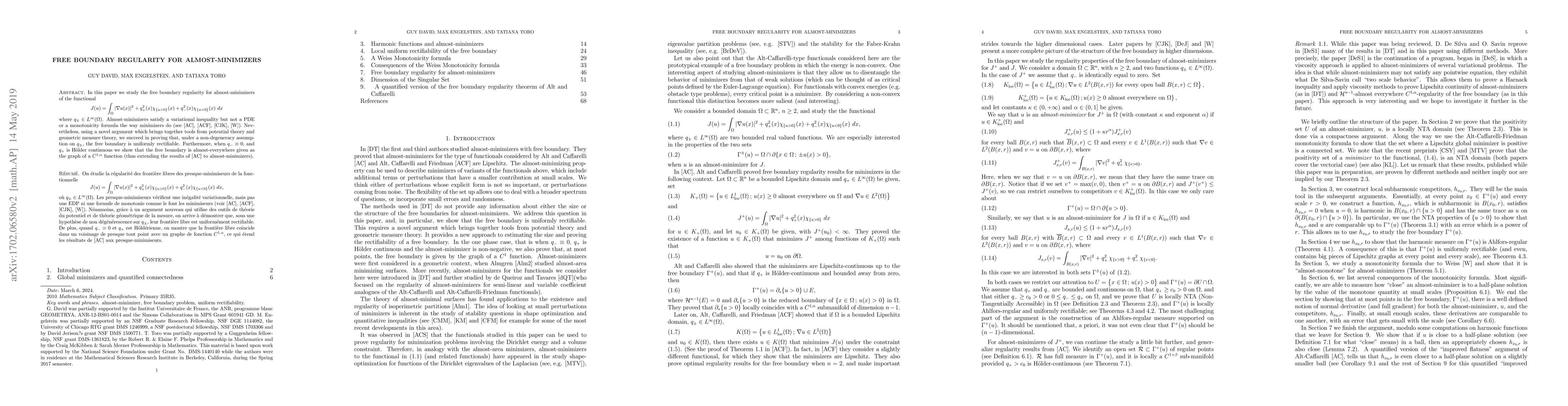 The paper introduces a refined analysis of free boundary regularity for almost-minimizers, extending known results for minimizers and providing conditions for uniform rectifiability and $C^{1,\alpha}$ smoothness.