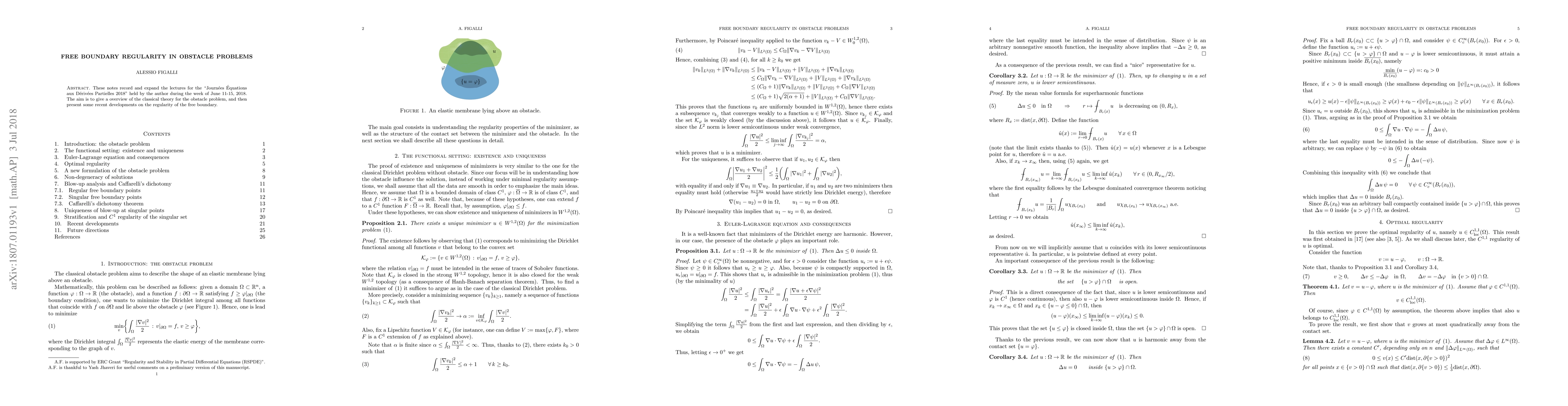 These notes record and expand the lectures for the `Journ\'ees \'Equations aux D\'eriv\'ees Partielles 2018' held by the author during the week of June 11-15, 2018. The aim is to give a overview of the classical theory for the obstacle problem, and then present some recent developments on the regularity of the free boundary.