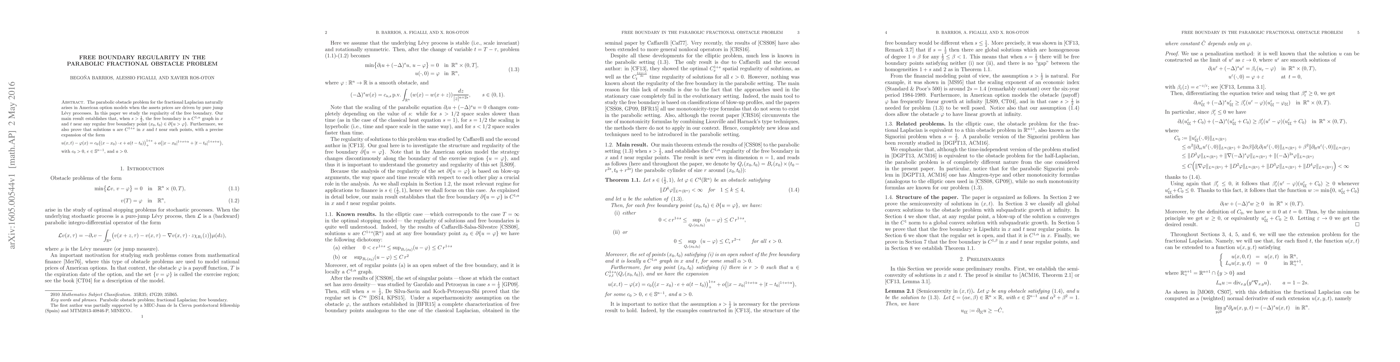 The parabolic obstacle problem for the fractional Laplacian naturally arises in American option models when the assets prices are driven by pure jump L\'evy processes. In this paper we study the regularity of the free boundary. Our main result establishes that, when $s>\frac12$, the free boundary is a $C^{1,\alpha}$ graph in $x$ and $t$ near any regular free boundary point $(x_0,t_0)\in \partial\{u>\varphi\}$. Furthermore, we also prove that solutions $u$ are $C^{1+s}$ in $x$ and $t$ near such points, with a precise expansion of the form \[u(x,t)-\varphi(x)=c_0\bigl((x-x_0)\cdot e+a(t-t_0)\bigr)_+^{1+s}+o\bigl(|x-x_0|^{1+s+\alpha}+ |t-t_0|^{1+s+\alpha}\bigr),\] with $c_0>0$, $e\in \mathbb{S}^{n-1}$, and $a>0$.