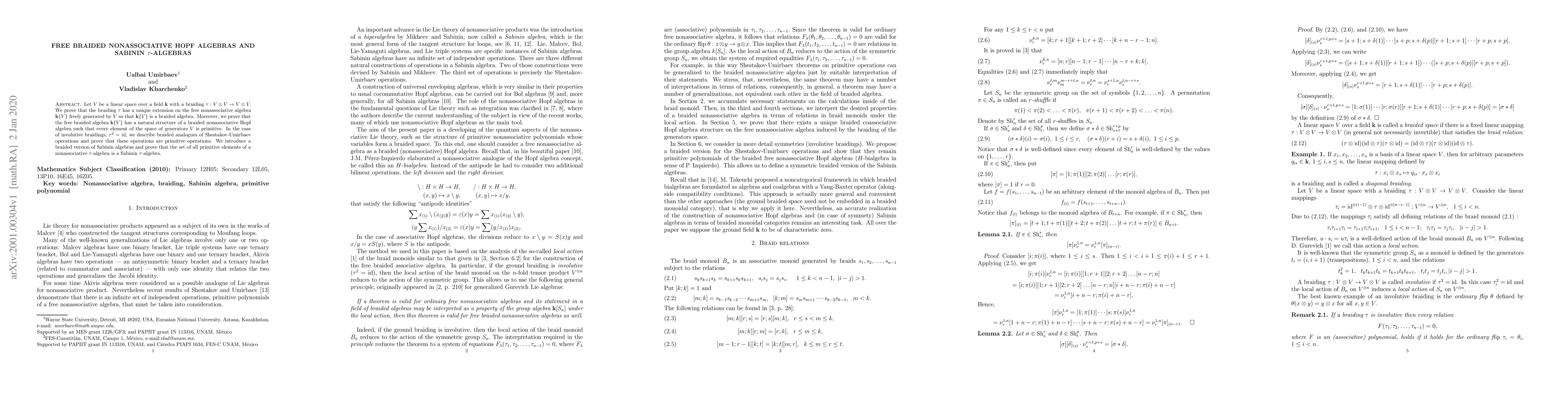 This paper constructs free braided nonassociative Hopf algebras from a braided linear space $V$ and proves the existence of a unique braiding extension. It also introduces Sabinin $\tau$-algebras and shows that the primitive elements within nonassociative $\tau$-algebras form such a structure.