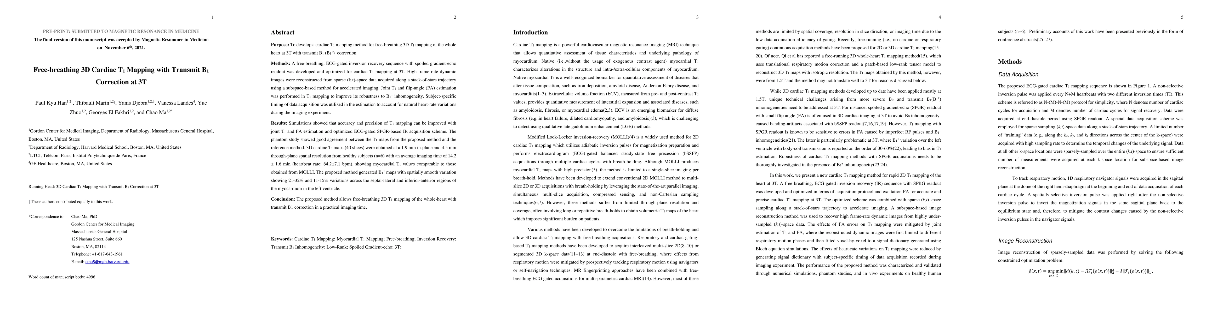 Researchers developed a method for 3D cardiac T1 mapping in free-breathing mode with transmit B1 correction at 3T, achieving high spatial resolution and practical imaging times.